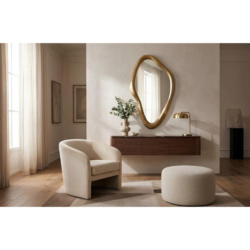 Lustro ścienne MARQUISE to wyjątkowy element dekoracyjny stworzony z myślą o osobach poszukujących nietypowych rozwiązań i unikalnego designu. Jego nieregularna geometryczna rama w złotym kolorze nadaje wnętrzu wyjątkowego charakteru, przyciągając wzrok i podkreślając indywidualny styl przestrzeni. Wykonana z poliuretanu rama wyróżnia się elegancją, a sam kształt lustra łączy estetykę z praktycznością. Lustro MARQUISE można łatwo zamontować na ścianie na preferowanej wysokości, co czyni je niezwykle uniwersalnym dodatkiem do każdego wnętrza. Doskonale pasuje zarówno do stylu glamour, jak i nowoczesnych aranżacji, gdzie nie tylko optycznie powiększy przestrzeń, ale także stanie się kluczowym akcentem dekoracyjnym. Bez wątpienia lustro to jest harmonijnym połączeniem funkcjonalności i oryginalnego designu, które wzbogaci każdy salon, sypialnię czy też przedpokój wprowadzając do ich wnętrza odrobinę luksusu i elegancji.