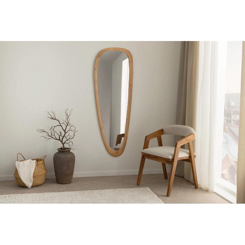 Lustro wiszące ORGANIC zostało stworzone z myślą o miłośnikach prostych form i praktycznych rozwiązań. Lustro to bez wątpienia dzięki swojej geometrycznej zaokrąglonej podłużnej ramie doda wnętrzu przestrzeni oraz naturalnego charakteru, przykuwając tym samym uwagę każdego. Ramę lustra stanowi drewno kauczukowe imitujące wygląd dębu w naturalnym odcieniu, którego głównym atutem jest praktyczny i funkcjonalny kształt. Wykonane zostało z bardzo dużą precyzją, dzięki czemu każdy egzemplarz jest unikatowy i wyjątkowy, można go swobodnie powiesić na ścianie według własnego uznania w dowolnie wybranym miejscu. Sprawdzi się znakomicie w każdym pomieszczeniu w stylu nowoczesnym, gdzie doda nie tylko funkcjonalności i oryginalnego wyglądu, ale także stanie się praktycznym dodatkiem ozdabiającym każde wnętrze.