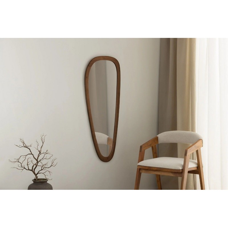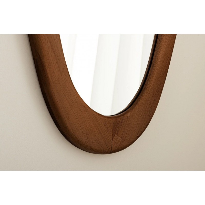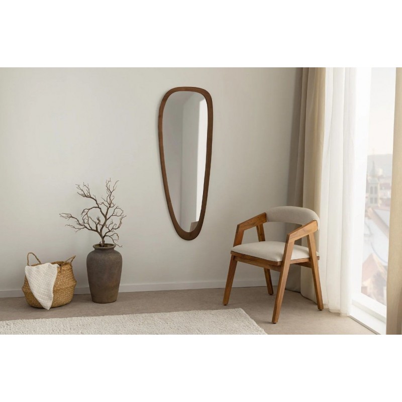 Lustro wiszące ORGANIC zostało stworzone z myślą o miłośnikach prostych form i praktycznych rozwiązań. Lustro to bez wątpienia dzięki swojej geometrycznej zaokrąglonej podłużnej ramie doda wnętrzu przestrzeni oraz naturalnego charakteru, przykuwając tym samym uwagę każdego. Ramę lustra stanowi drewno kauczukowe imitujące wygląd orzecha włoskiego, którego głównym atutem jest praktyczny i funkcjonalny kształt. Wykonane zostało z bardzo dużą precyzją, dzięki czemu każdy egzemplarz jest unikatowy i wyjątkowy, można go swobodnie powiesić na ścianie według własnego uznania w dowolnie wybranym miejscu. Sprawdzi się znakomicie w każdym pomieszczeniu w stylu nowoczesnym, gdzie doda nie tylko funkcjonalności i oryginalnego wyglądu, ale także stanie się praktycznym dodatkiem ozdabiającym każde wnętrze.