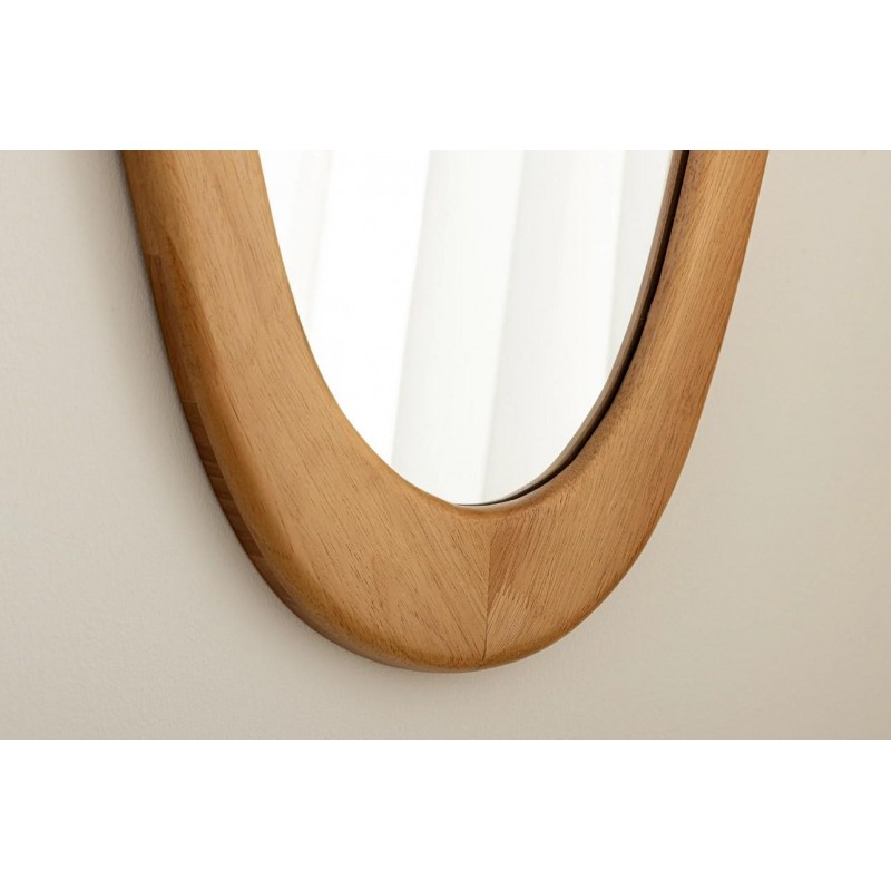 Lustro wiszące ORGANIC zostało stworzone z myślą o miłośnikach prostych form i praktycznych rozwiązań. Lustro to bez wątpienia dzięki swojej geometrycznej zaokrąglonej podłużnej ramie doda wnętrzu przestrzeni oraz naturalnego charakteru, przykuwając tym samym uwagę każdego. Ramę lustra stanowi drewno kauczukowe imitujące wygląd dębu w naturalnym odcieniu, którego głównym atutem jest praktyczny i funkcjonalny kształt. Wykonane zostało z bardzo dużą precyzją, dzięki czemu każdy egzemplarz jest unikatowy i wyjątkowy, można go swobodnie powiesić na ścianie według własnego uznania w dowolnie wybranym miejscu. Sprawdzi się znakomicie w każdym pomieszczeniu w stylu nowoczesnym, gdzie doda nie tylko funkcjonalności i oryginalnego wyglądu, ale także stanie się praktycznym dodatkiem ozdabiającym każde wnętrze.