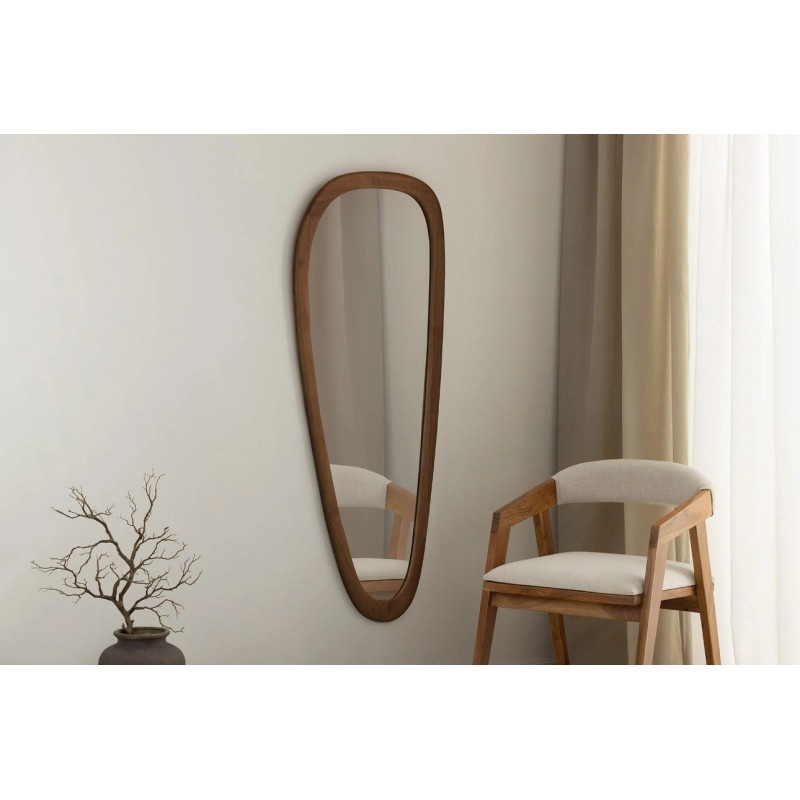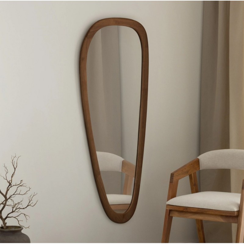 Lustro wiszące ORGANIC zostało stworzone z myślą o miłośnikach prostych form i praktycznych rozwiązań. Lustro to bez wątpienia dzięki swojej geometrycznej zaokrąglonej podłużnej ramie doda wnętrzu przestrzeni oraz naturalnego charakteru, przykuwając tym samym uwagę każdego. Ramę lustra stanowi drewno kauczukowe imitujące wygląd orzecha włoskiego, którego głównym atutem jest praktyczny i funkcjonalny kształt. Wykonane zostało z bardzo dużą precyzją, dzięki czemu każdy egzemplarz jest unikatowy i wyjątkowy, można go swobodnie powiesić na ścianie według własnego uznania w dowolnie wybranym miejscu. Sprawdzi się znakomicie w każdym pomieszczeniu w stylu nowoczesnym, gdzie doda nie tylko funkcjonalności i oryginalnego wyglądu, ale także stanie się praktycznym dodatkiem ozdabiającym każde wnętrze.