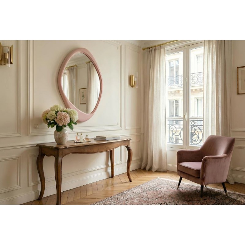Lustro ścienne ORGANIC to wyjątkowy element dekoracyjny stworzony z myślą o osobach poszukujących nietypowych rozwiązań i unikalnego designu. Jego nieregularna geometryczna rama w różowym kolorze nadaje wnętrzu wyjątkowego charakteru, przyciągając wzrok i podkreślając indywidualny styl przestrzeni. Wykonana z poliuretanu rama wyróżnia się elegancją, a sam kształt lustra łączy estetykę z praktycznością. Lustro ORGANIC można łatwo zamontować na ścianie na preferowanej wysokości, co czyni je niezwykle uniwersalnym dodatkiem do każdego wnętrza. Doskonale pasuje do stylu klasycznego, jak i nowoczesnych aranżacji, gdzie nie tylko optycznie powiększy przestrzeń, ale także stanie się kluczowym akcentem dekoracyjnym. Bez wątpienia lustro to jest harmonijnym połączeniem funkcjonalności i oryginalnego designu, które wzbogaci każdy salon, sypialnię czy też przedpokój wprowadzając do ich wnętrza odrobinę luksusu i elegancji.