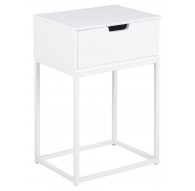 SZAFKA NOCNA POLO BIAŁA 40X40 CM BIAŁA Niewielki, zgrabny stolik nocny z szufladą idealnie wpasuje się w wystrój skandynawski. Kolor biały w połączeniu z metalową czarną ramą nadaje mu nowoczesny design. W serii znajduje się również szafka POLO w kolorze czarnym.
