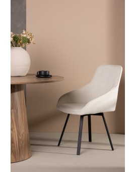 Krzesło do jadalni z serii Dyrön szybko tworzy imponujący punkt centralny w sercu domu! Krzesło ma dekoracyjny i szczegółowy design z zakrzywionymi kształtami, zintegrowanymi podłokietnikami i rozszerzonymi nogami, konsekwentnie wykonane z wytrzymałego plastiku i stali w eleganckim greige kolor. Dopasuj go do stylowego stołu jadalnego, aby stworzyć...