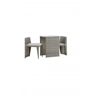 Przytulny szary zestaw kawiarniany o ładnym designie wykonany z wytrzymałego sztucznego rattanu, który idealnie pasuje do mniejszego patio. Zestaw kawiarniany składa się z dwóch krzeseł i stołu z towarzyszącą szklaną płytą, która jest odporna na pogodę i wiatr, schludne krzesła mają miękkie poduszki siedziska i można je łatwo wsunąć pod stół, co ułatwia...