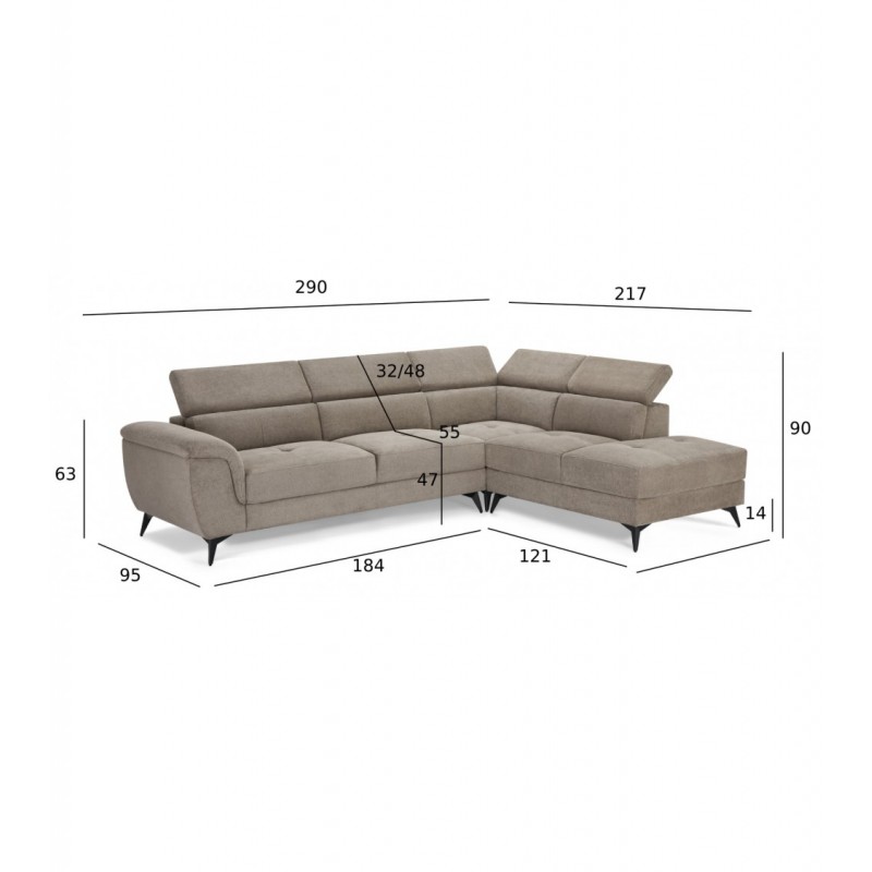 Przedstawiamy narożnik Betis, idealny dodatek do Twojej przestrzeni życiowej. Sofa ta, wykonana z tkaniny o powierzchni, emanuje elegancją i wygodą. Skład tkaniny 94% poliestru i 6% nylonu zapewnia trwałość i luksusowy wygląd. Wypełnienie poduszki siedziska, wykonane z pianki i sprężyn kieszeniowych, zapewnia optymalne wsparcie i wygodę. Wypełnienie poduszki oparcia, składające się z włókien PP, dodaje dodatkowej warstwy przytulności. Metalowe nogi w eleganckim czarnym kolorze dodają całości wyrafinowania. Dzięki wysokości siedziska 47 cm i gęstości pianki 30 kg/m3 ta sofa gwarantuje wygodne siedzenie. Funkcja regulowanego zagłówka pozwala dostosować poziom komfortu. Wymagany jest montaż, lecz wymiary 95/163x290x90 cm sprawiają, że z łatwością wpasuje się w każdą przestrzeń. Dzięki maksymalnemu nośności 650 kg i wygodnemu siedzisku dla 5 członków rodziny, narożnik Betis jest zarówno praktyczny, jak i stylowy. Ulepsz swój salon za pomocą tego wyjątkowego mebla.