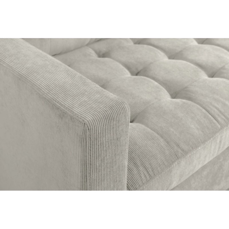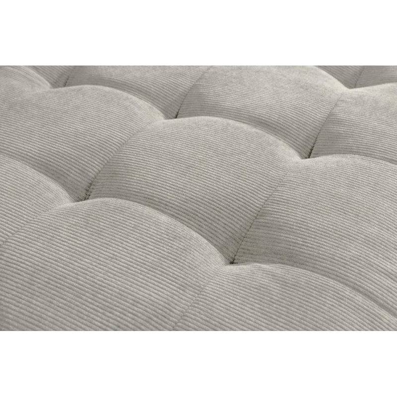 Narożnik STOCKHOLM zaprojektowany został z myślą o osobach poszukujących zarówno prostoty oraz wyjątkowego nowoczesnego designu. Jego niebanalny kształt oraz kompaktowe wymiary sprawiają, że doskonale wpisuje się w każde wnętrze. Został otapicerowany modną sztruksową tkaniną w odcieniu beżowym, która nie tylko zachwyca swoim wyglądem, ale również wprowadza do wnętrza przytulność, ciepło oraz elegancję. Dodatkowym atutem mebla jest bez wątpienia wygląd oraz zaokrąglone kształty przeszycia oraz pikowania, które od razu podkreślają wyjątkowy charakter. Komfort codziennego użytkowania zapewnia szeroka leżanka oraz siedzisko wypełnione wysokiej jakości pianką, gwarantującą doskonałe podparcie oraz niesamowitą wygodę podczas jego użytkowania. Dzięki solidnej, czarnej podstawie mebel nie tylko zyskuje na stabilności, ale również staje się idealnym wyborem dla tych, którzy poszukują harmonii między komfortem, estetyką a praktycznym zastosowaniem. STOCKHOLM z łatwością odnajdzie się zarówno w klasycznych, jak i nowoczesnych wnętrzach, dodając im stylu, elegancji i indywidualnego wyrazu.