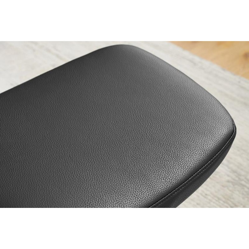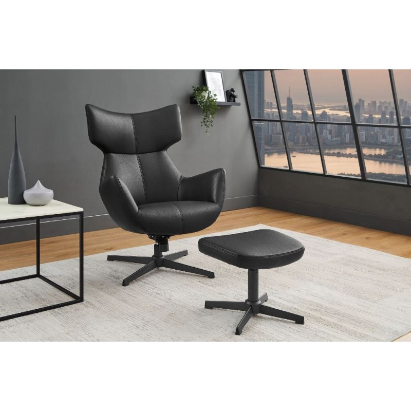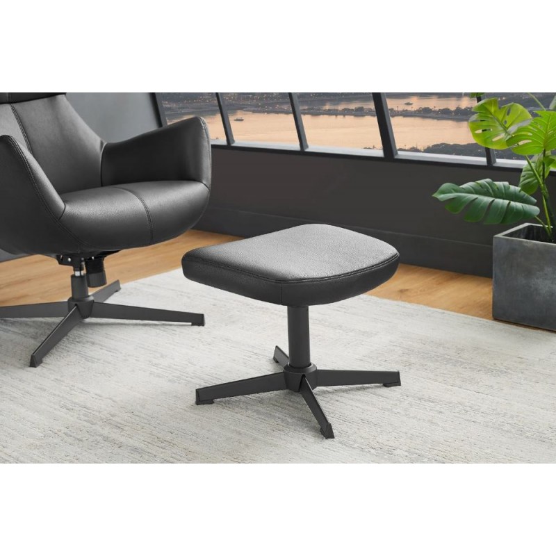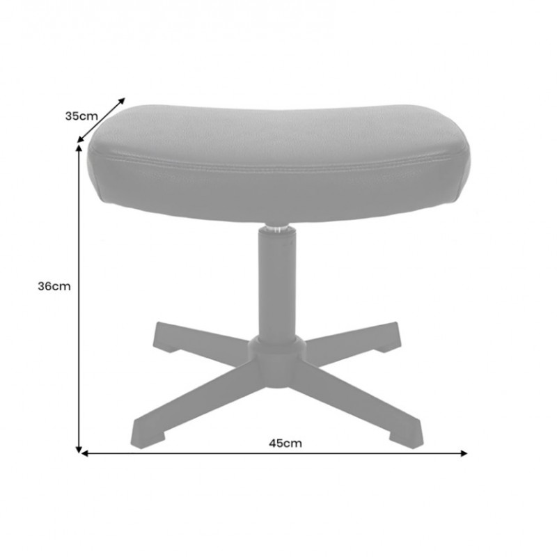 Podnóżek VOGUE to idealne rozwiązanie do każdego wnętrza w stylu nowoczesnym, gdzie mebel ten stanie się wygodnym dodatkiem dodającym wnętrzu ciepła oraz wyjątkowego charakteru. Wyróżnia się przede wszystkim swoją oryginalną formą oraz bardzo ciekawym wyglądem, dzięki zastosowaniu na nim modnej ekoskóry w kolorze czarnym. Stworzony został głównie z myślą o użytkownikach ceniących sobie funkcjonalność oraz stylowe wykończenie. Jego obrotową podstawę stanowi konstrukcja wykonana z metalu w czarnym kolorze, przez co prezentuje się zjawiskowo i znakomicie dopełnia wygląd mebla.