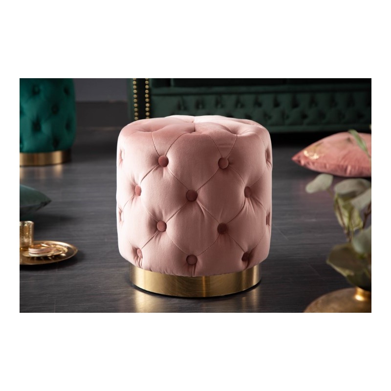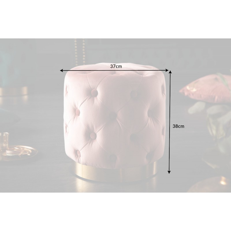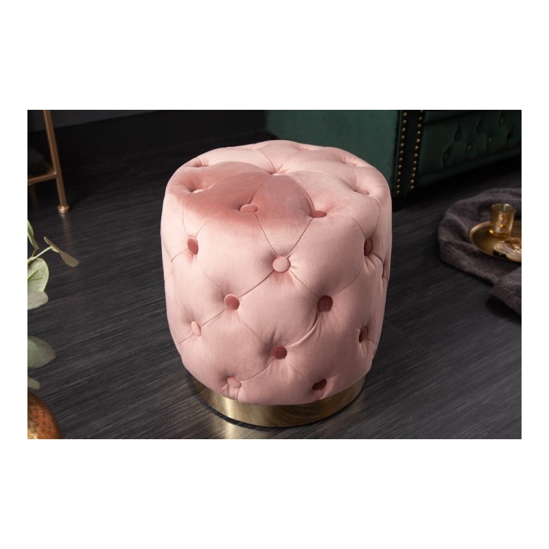 PUFA GAMBY RÓŻOWA WELUR Gamby pufa - pufa welurowe, w kolorze różu i podstawa w kolorze mosiądzu, Ø34x43 cm, HN1214