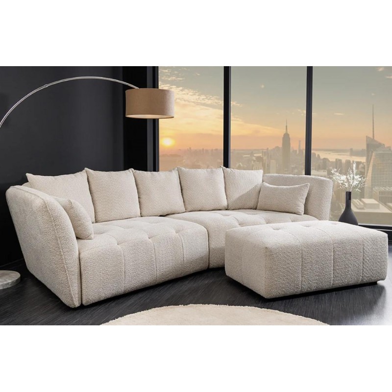 SOFA ROYAL 295 CM BOUCLE BEŻOWA Sofa ROYAL zaprojektowana została z myślą o osobach poszukujących wyjątkowego połączenia nowoczesnego designu i ponadprzeciętnego komfortu. Jej niebanalny kształt oraz kompaktowe wymiary sprawiają, że doskonale wpisuje się w każde wnętrze. Została otapicerowana modną tkaniną bouclé w odcieniu beżowym, która nie tylko...