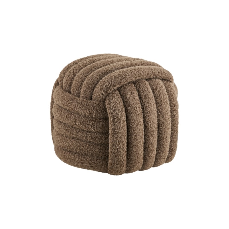 PUFA MEDAS BRĄZOWA BOUCLE Pufa Medas - pufa w tkaninie boucle w kolorze brązowym, nogi naturalne sosnowe, Ø45x36 cm