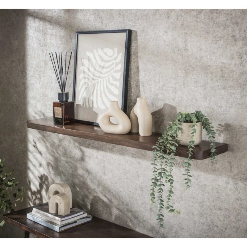 Półka ścienna MAVI to idealne rozwiązanie do salonu lub biura urządzonych w stylu nowoczesnym. Doskonale wpisuje się zarówno w minimalistyczne jak również przestronne wnętrza. Ta niezwykle funkcjonalna półka o wymiarach 120x20,5 cm doskonale nada każdemu wnętrzu przytulnego charakteru. Całości mebla wykonana jest z dużą precyzją z lakierowanego litego drewna akacji w brązowym kolorze, a dzięki zachowanej oryginalnej strukturze drewna w postaci sęków i słojów uwydatniona została jej naturalność drzewa. Mebel ten bez wątpienia pozwoli wyeksponować ulubione książki, dekoracje i fotografie. Dodatkowym atutem jest nie tylko wygląd, zaokrąglone krawędzie, kształty, funkcjonalność oraz praktyczność, ponieważ została zaprojektowana głównie z myślą o organizacji przestrzeni. Swoją elegancją, stylem oraz wyrazistością doskonale wzbogaci każde wnętrze urządzone w stylu nowoczesnym oraz boho.