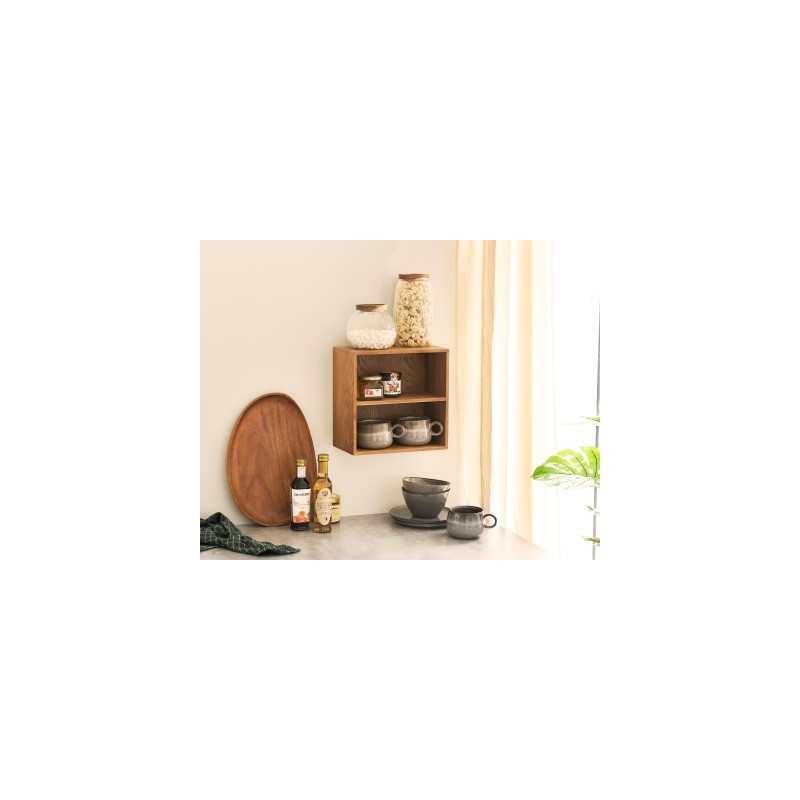PÓŁKA ŚCIENNA PLAATE 30X25 CM AKACJA DOSTĘPNA OD RĘKI - 1 SZTUKA Drewniana półka ścienna do salonu lub pokoju składa się z dwóch desek wykonanych z drewna akacja, przymocowanych do ramy stalowej malowanej proszkowo na czarno. Produkt jest częścią zestawu z serii półek PLAATE, po połączeniu których można stworzyć ładną dekorację na ścianie. Drewniany regał...