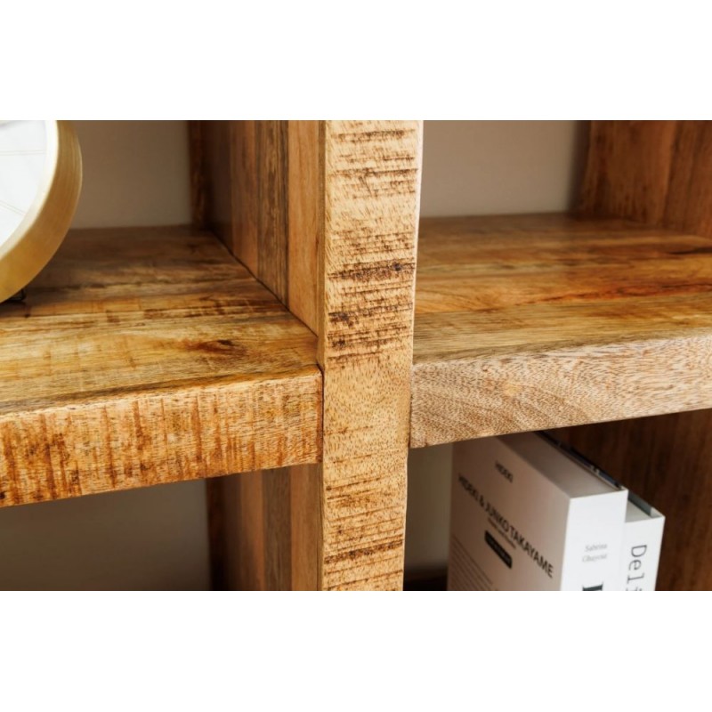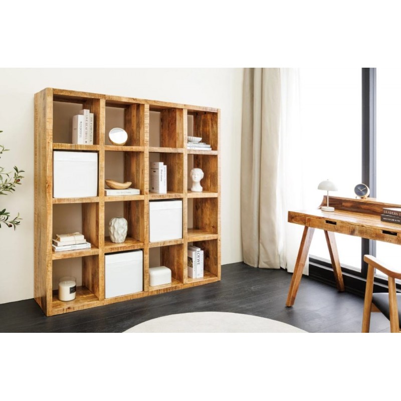 Regał IRON CRAFT to stylowy mebel pasujący do każdego wnętrza w stylu nowoczesnym oraz industrialnym. Wykonany został w całości z lakierowanego drewna mango w naturalnym kolorze. Dwanaście jednakowo rozmieszczonych otwartych półek nadaje mu niezwykłego charakteru, pozwalając jednocześnie na wyeksponowanie ulubionych książek, fotografii oraz dekoracji. Niezależnie czy znajdzie się on w sypialni, biurze czy salonie dzięki swoim kształtom bez wątpienia zwróci na siebie uwagę. Mebel został wykonany z największą dokładnością i dbałością o każdy szczegół poprzez zachowane oryginalnej struktury drewna w postaci sęków i słojów. Jest niezwykle praktyczny oraz funkcjonalny dzięki czemu stanie się doskonałym dodatkiem do każdego nowoczesnego, klasycznego jak rustykalnego wnętrza.