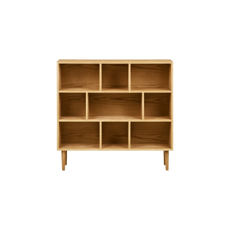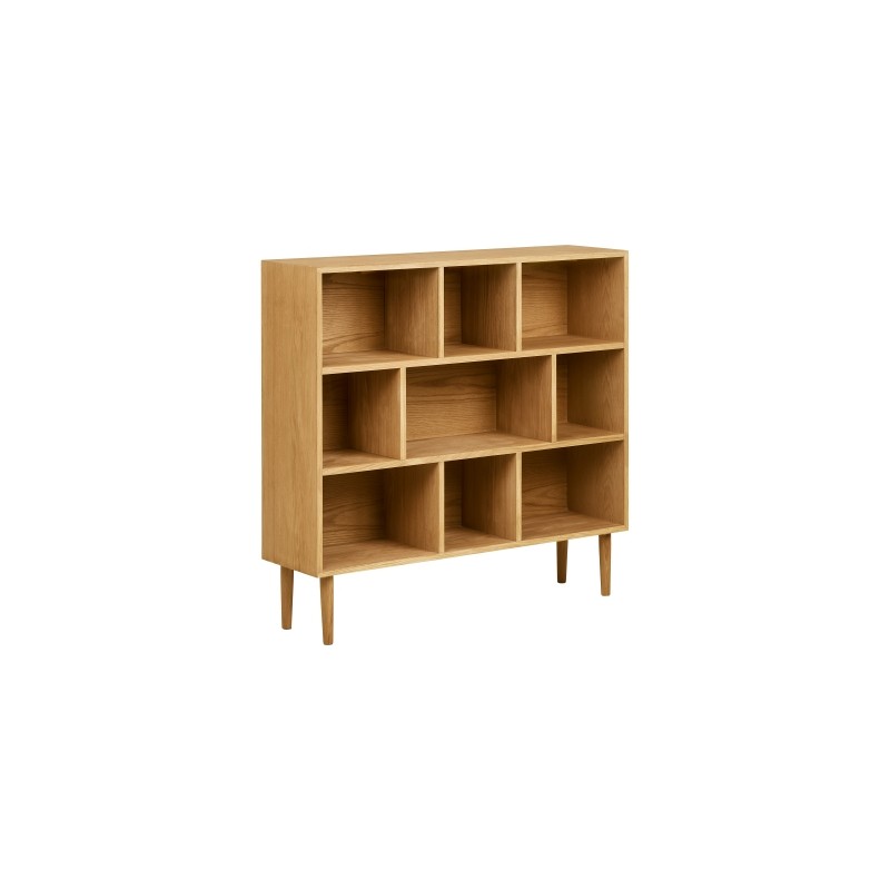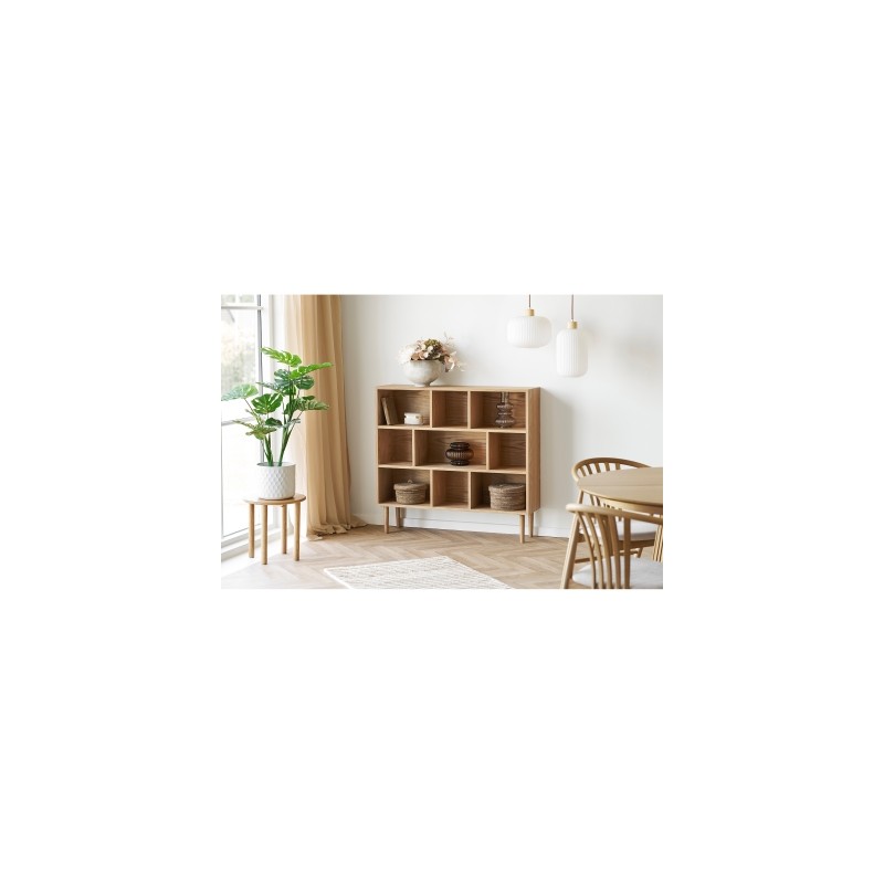 Półka na książki Oshawa to stylowy i praktyczny regał, który łączy naturalny wygląd drewna z nowoczesnym wzornictwem. Wykonana z dębu oraz forniru dębowego w kolorze naturalnym, prezentuje się elegancko i ponadczasowo, wprowadzając do wnętrza ciepły, przytulny klimat.