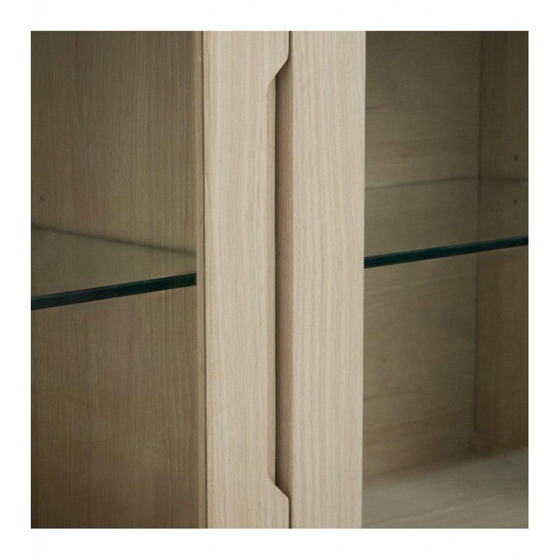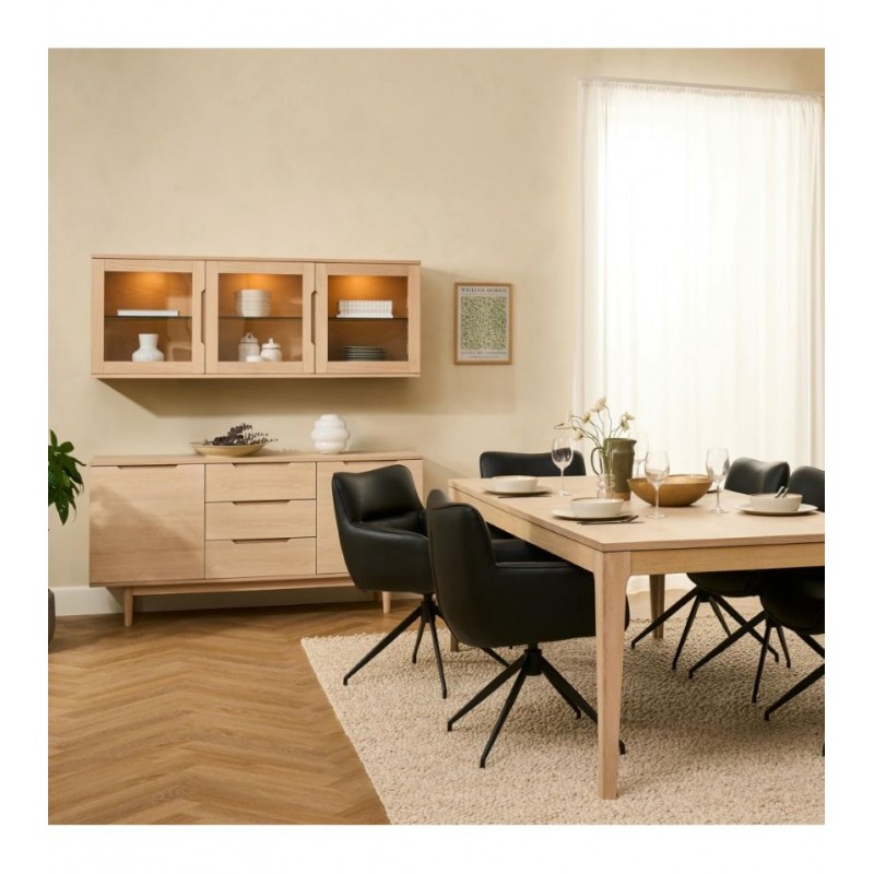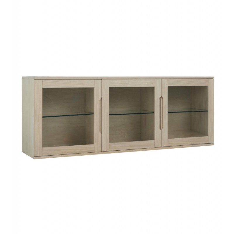 Szafka ścienna KERTEMINDE to idealne rozwiązanie do każdego wnętrza w stylu nowoczesnym, dodająca przestrzeni niezwykle naturalnego wykończenia. Została wykonana z wysokiej jakości materiałów, takich jak lite drewno dębowe, fornir dębowy oraz płyta MDF, zapewniająca trwałość i elegancki wygląd. Powierzchnie wykończono olejem na bazie bielonego forniru dębowego, który nadaje ciepła i wyrafinowania każdemu wnętrzu harmonijnie komponując się z różnymi stylami aranżacji. Szafka ta wyposażona jest w system cichego zamykania, co sprawia, że jej użytkowanie jest wyjątkowo funkcjonalne i komfortowe. Frezowane uchwyty podkreślają nowoczesny i elegancki design mebla. Wyposażona jest w trzy podwójne pojemne przeszklone zamykane szafki o grubości szkła 8 mm, dzięki czemu całość mebla bez problemu pomieści najpotrzebniejsze przedmioty codziennego użytku, oferując tym samym dużą powierzchnię do przechowywania. Zaletą tej szafki jest funkcjonalność, wytrzymałość oraz łatwość czyszczenia, ponadto wyróżnia się swoją wyrazistością, kolorem i strukturą powodując, że każdy egzemplarz jest unikatowy. Zaprojektowana jest niewątpliwie z dużą precyzją, dzięki zachowaniu naturalnej oryginalności drzewa zarówno słojów jak i sęków, które prezentują się fenomenalnie, nadając tym samym meblowi oryginalnego charakteru. Szafka KERTEMINDE sprawdzi się znakomicie w każdym nowoczesnym salonie, gdzie stanie się nie tylko funkcjonalnym meblem, ale także przepiękną dekoracją, dzięki której pomieszczenie nabierze ciepła i naturalnego efektu.