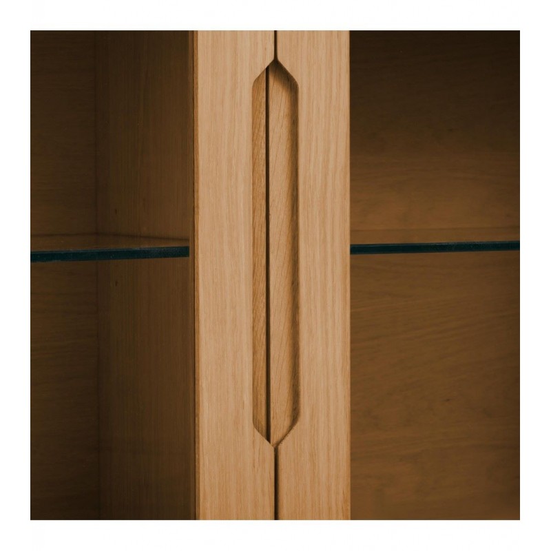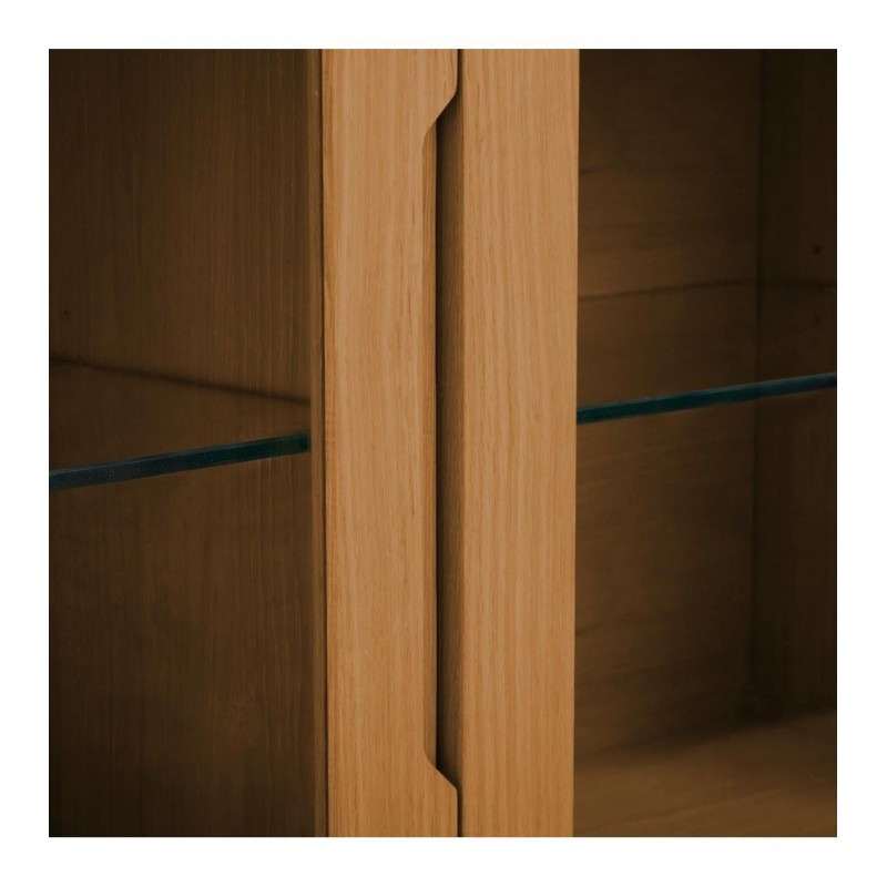 Szafka ścienna KERTEMINDE to idealne rozwiązanie do każdego wnętrza w stylu nowoczesnym, dodająca przestrzeni niezwykle naturalnego wykończenia. Została wykonana z wysokiej jakości materiałów, takich jak lite drewno dębowe, fornir dębowy oraz płyta MDF, zapewniająca trwałość i elegancki wygląd. Powierzchnie wykończono naturalnym olejem na bazie forniru dębowego, który nadaje ciepła i wyrafinowania każdemu wnętrzu harmonijnie komponując się z różnymi stylami aranżacji. Szafka ta wyposażona jest w system cichego zamykania, co sprawia, że jej użytkowanie jest wyjątkowo funkcjonalne i komfortowe. Frezowane uchwyty podkreślają nowoczesny i elegancki design mebla. Wyposażona jest w trzy podwójne pojemne przeszklone zamykane szafki o grubości szkła 8 mm, dzięki czemu całość mebla bez problemu pomieści najpotrzebniejsze przedmioty codziennego użytku, oferując tym samym dużą powierzchnię do przechowywania. Zaletą tej szafki jest funkcjonalność, wytrzymałość oraz łatwość czyszczenia, ponadto wyróżnia się swoją wyrazistością, kolorem i strukturą powodując, że każdy egzemplarz jest unikatowy. Zaprojektowana jest niewątpliwie z dużą precyzją, dzięki zachowaniu naturalnej oryginalności drzewa zarówno słojów jak i sęków, które prezentują się fenomenalnie, nadając tym samym meblowi oryginalnego charakteru. Szafka KERTEMINDE sprawdzi się znakomicie w każdym nowoczesnym salonie, gdzie stanie się nie tylko funkcjonalnym meblem, ale także przepiękną dekoracją, dzięki której pomieszczenie nabierze ciepła i naturalnego efektu.