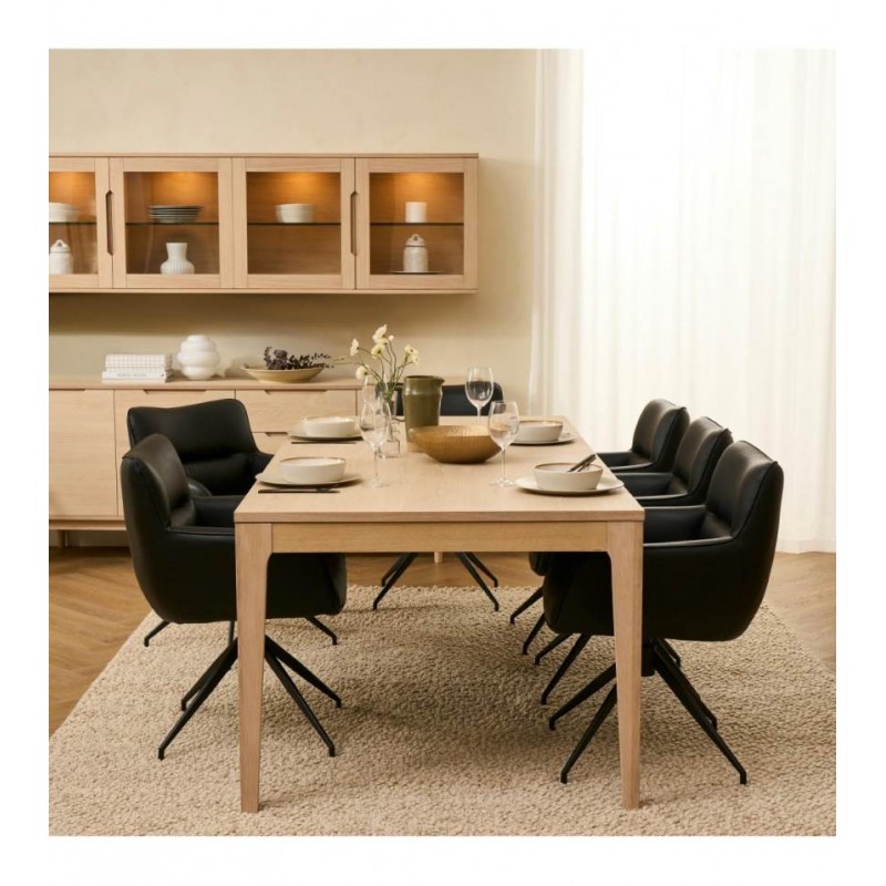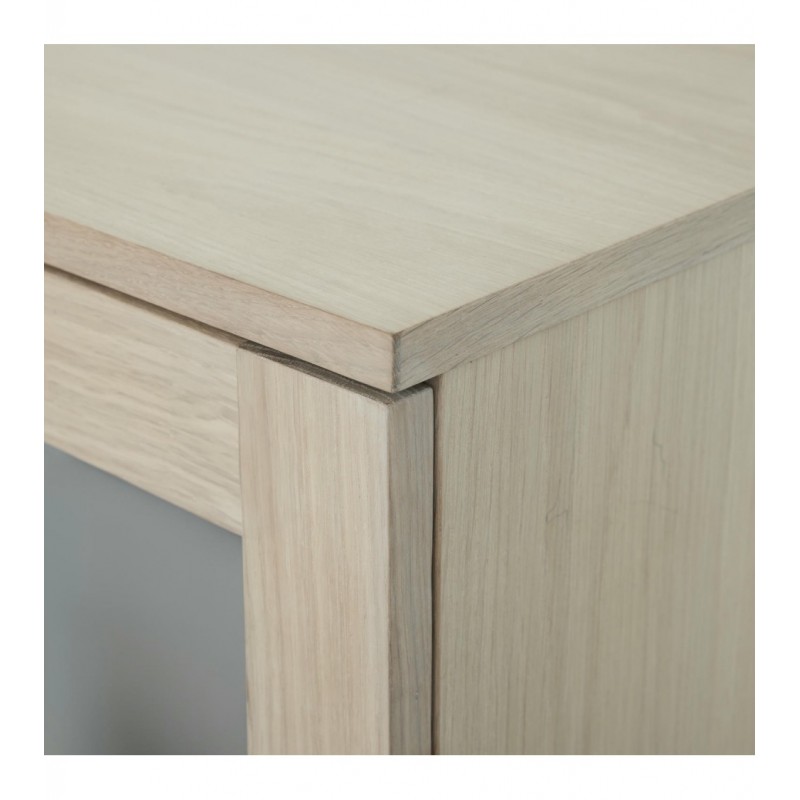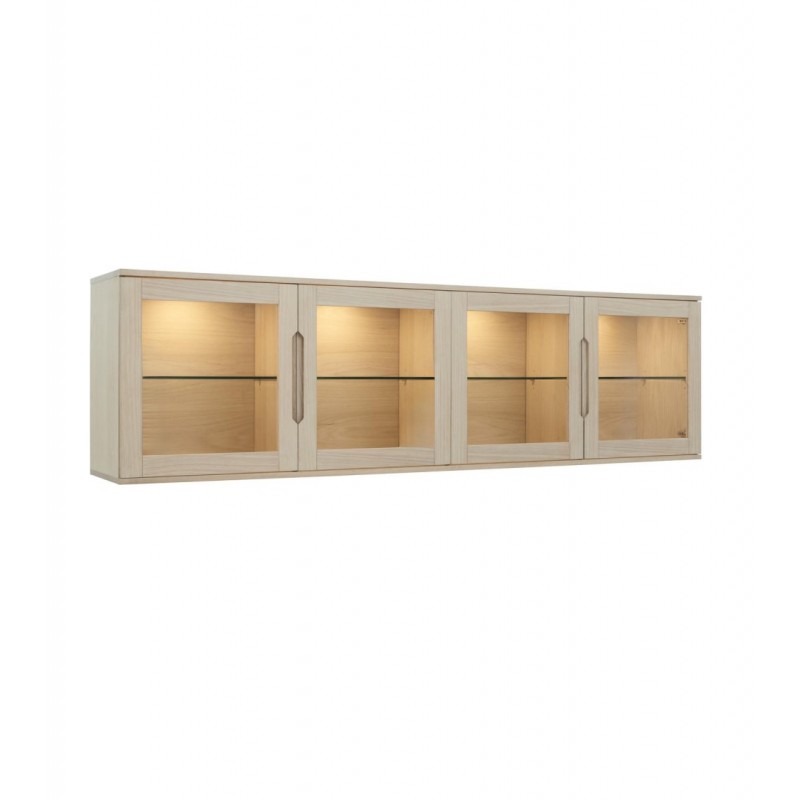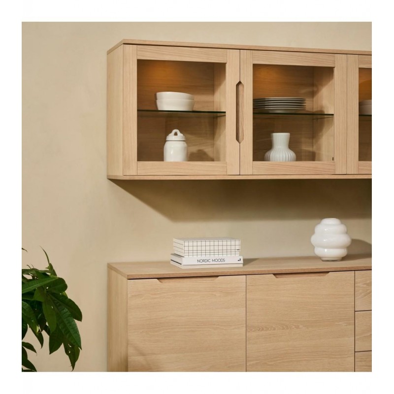 Szafka ścienna KERTEMINDE to idealne rozwiązanie do każdego wnętrza w stylu nowoczesnym, dodająca przestrzeni niezwykle naturalnego wykończenia. Została wykonana z wysokiej jakości materiałów, takich jak lite drewno dębowe, fornir dębowy oraz płyta MDF, zapewniająca trwałość i elegancki wygląd. Powierzchnie wykończono olejem na bazie bielonego forniru dębowego, który nadaje ciepła i wyrafinowania każdemu wnętrzu harmonijnie komponując się z różnymi stylami aranżacji. Szafka ta wyposażona jest w system cichego zamykania, co sprawia, że jej użytkowanie jest wyjątkowo funkcjonalne i komfortowe. Frezowane uchwyty podkreślają nowoczesny i elegancki design mebla. Wyposażona jest w cztery podwójne pojemne przeszklone zamykane szafki o grubości szkła 8 mm, dzięki czemu całość mebla bez problemu pomieści najpotrzebniejsze przedmioty codziennego użytku, oferując tym samym dużą powierzchnię do przechowywania. Zaletą tej szafki jest funkcjonalność, wytrzymałość oraz łatwość czyszczenia, ponadto wyróżnia się swoją wyrazistością, kolorem i strukturą powodując, że każdy egzemplarz jest unikatowy. Zaprojektowana jest niewątpliwie z dużą precyzją, dzięki zachowaniu naturalnej oryginalności drzewa zarówno słojów jak i sęków, które prezentują się fenomenalnie, nadając tym samym meblowi oryginalnego charakteru. Szafka KERTEMINDE sprawdzi się znakomicie w każdym nowoczesnym salonie, gdzie stanie się nie tylko funkcjonalnym meblem, ale także przepiękną dekoracją, dzięki której pomieszczenie nabierze ciepła i naturalnego efektu.