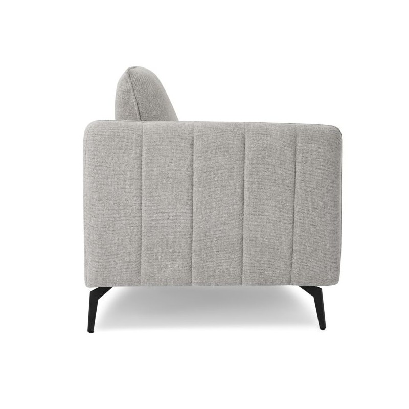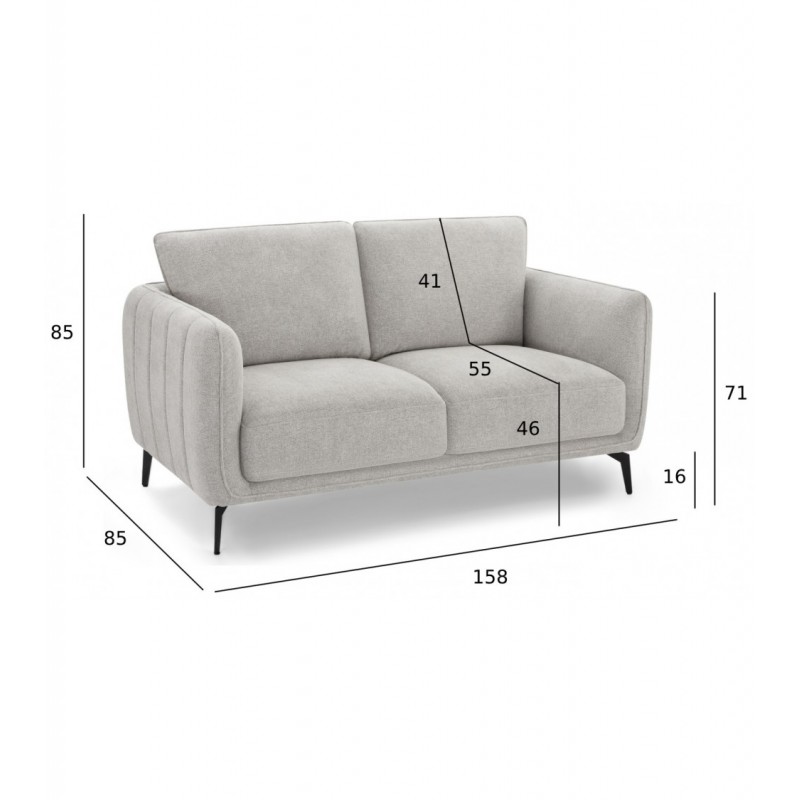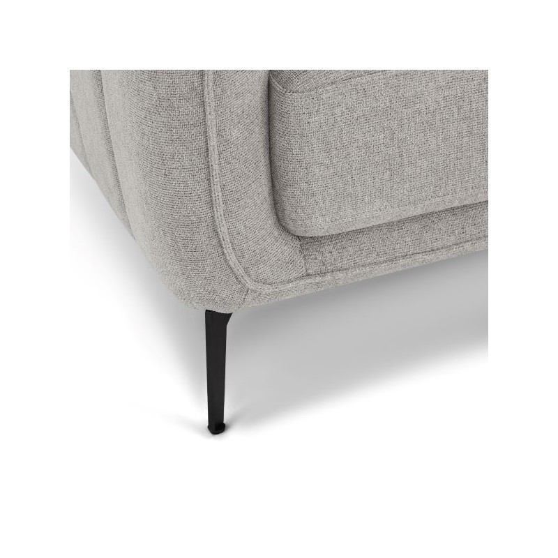 Stabilna konstrukcja osadzona jest na eleganckich metalowych nogach w kolorze czarnym, które podkreślają nowoczesny charakter sofy i jednocześnie zapewniają solidne podparcie. Wysokość siedziska 46 cm oraz pianka o gęstości 30 kg/m³ sprawiają, że sofa oferuje ergonomiczne i niezwykle wygodne miejsce do siedzenia.
