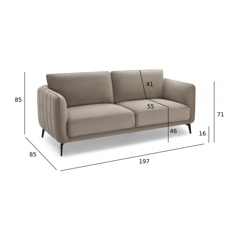 Sofa osadzona jest na eleganckich czarnych nogach metalowych, które podkreślają jej nowoczesny styl i zapewniają stabilność. Dzięki wysokości siedziska 46 cm i piance o gęstości 30 kg/m³, mebel oferuje ergonomiczne i wygodne miejsce do siedzenia dla całej rodziny.