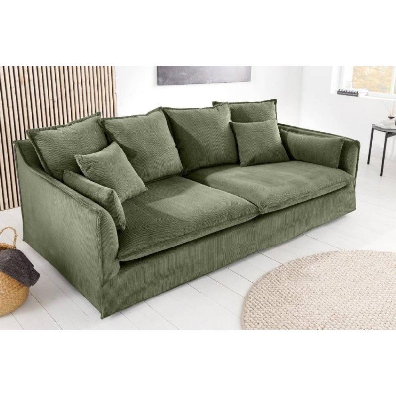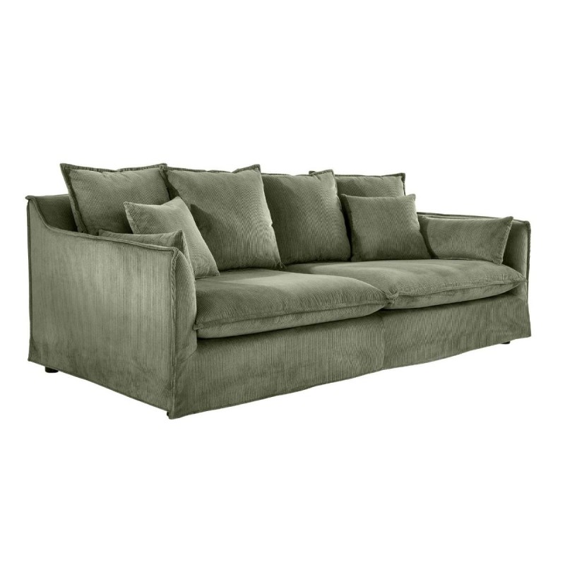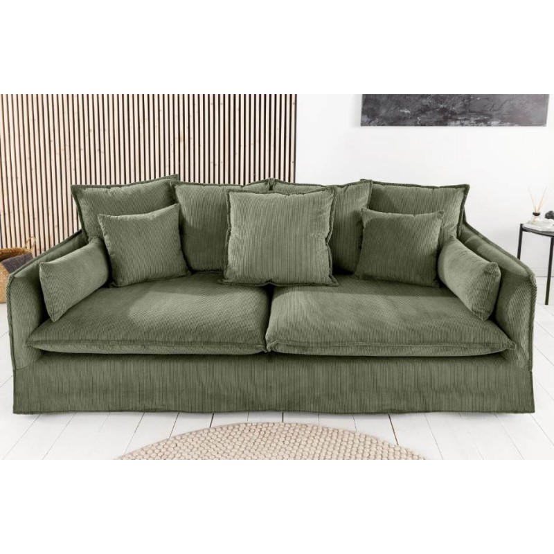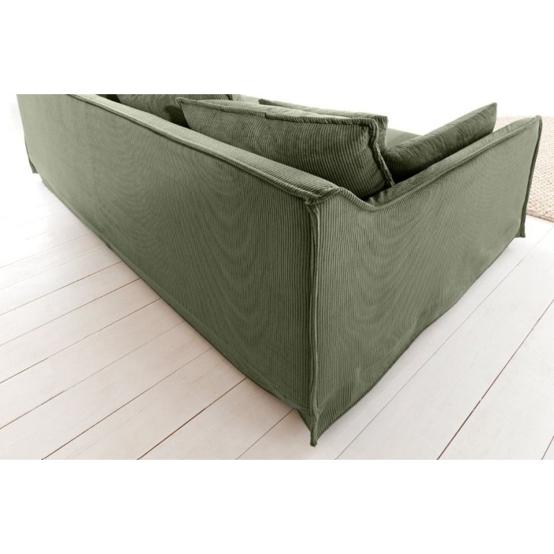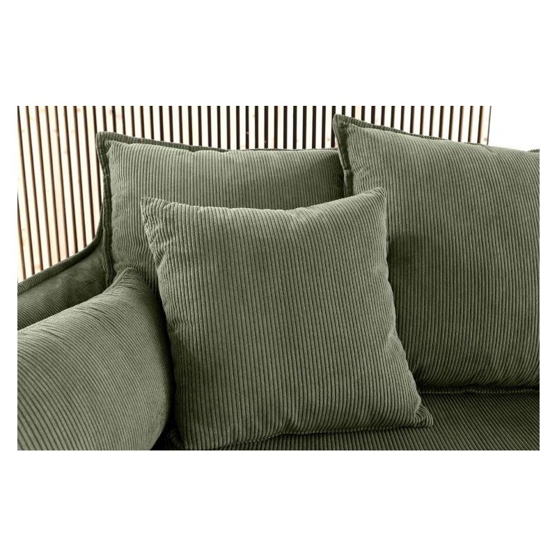 Ta niesamowita sofa HEAVEN doskonale łączy funkcjonalność ze stylem, dlatego jest odpowiednim wyborem do każdego nowoczesnego wnętrza. Wykonana z wysokiej jakości, trwałych materiałów, posiada tapicerkę z miękkiej w dotyku modnej tkaniny sztruksowej w kolorze zielonym, która gwarantuje maksymalny komfort użytkowania. Wygodne siedzisko w którym zastosowano sprężyny faliste typu nosag, wąskie podłokietniki oraz różnej wielkości poduszki idealnie wspierają sylwetkę siedzącego podczas jej użytkowania. Dodatkowym jej atutem jest możliwość ściągania i czyszczenia pokrowca. Sofa ta bez wątpienia będzie stanowić piękną dekorację nowoczesnego wnętrza, charakteryzując się solidnym i szczegółowym wykonaniem. Stworzona została głównie z myślą o użytkownikach ceniących sobie funkcjonalność oraz stylowe wykończenie. Ze względu na uniwersalny i nowoczesny design wpasuje się idealnie zarówno w klasyczne, jak i bardziej nowoczesne aranżacje, wzbogacając wnętrze oraz dodając mu niesamowitej oryginalności.