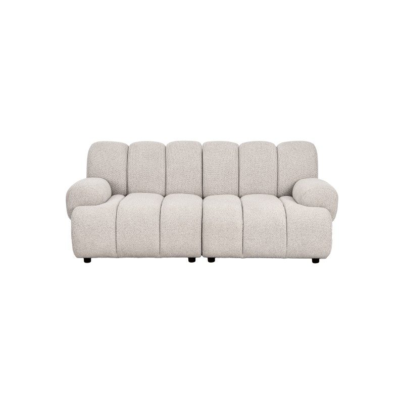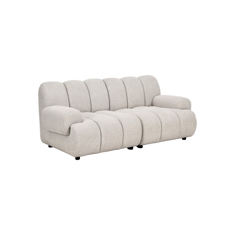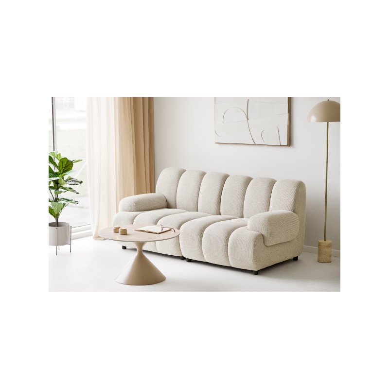 Model w subtelnym, piaskowym odcieniu doskonale wpisuje się w aktualne trendy aranżacyjne, nadając przestrzeni lekkości i elegancji. Miękkie, zaokrąglone formy oraz pionowe przeszycia podkreślają jego wyjątkowy charakter.