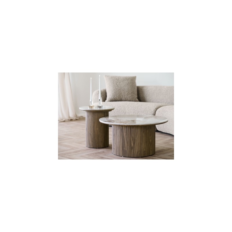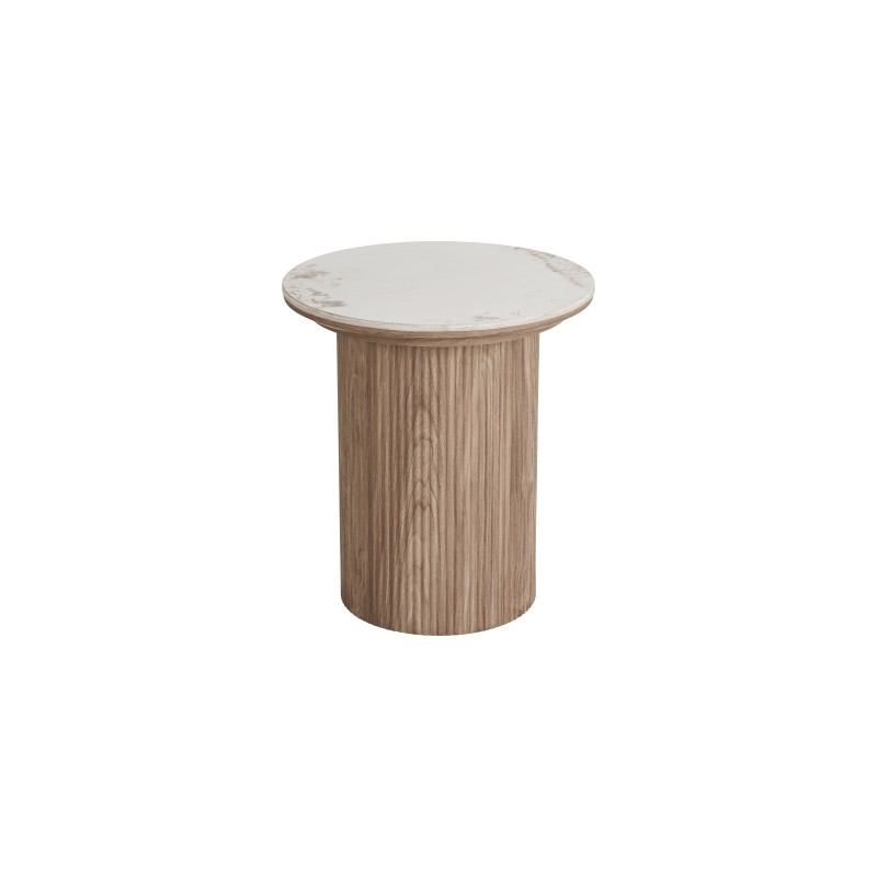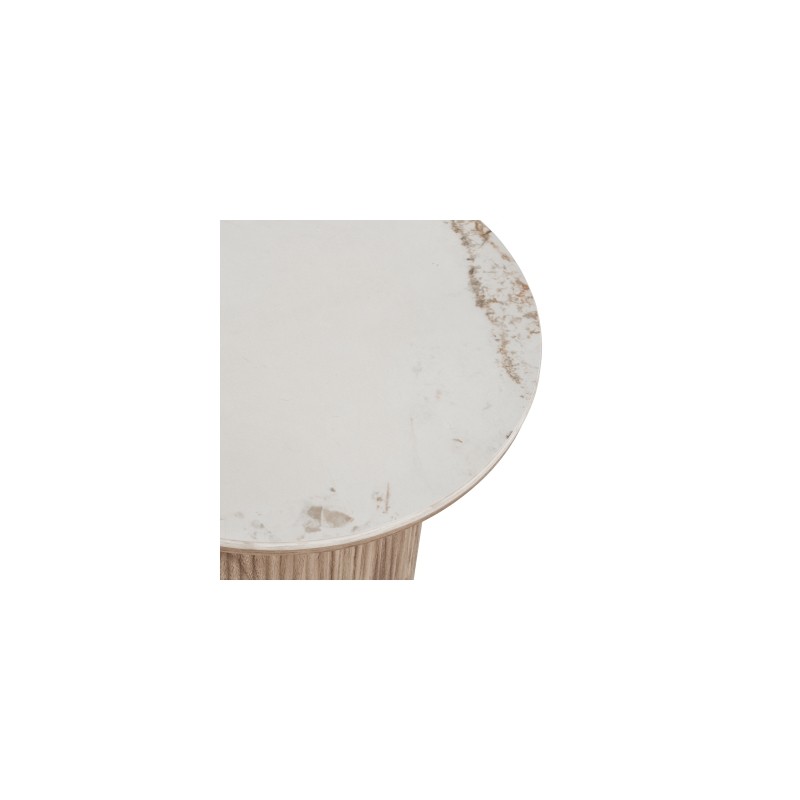 Stolik kawowy Athens to połączenie nowoczesnego designu, funkcjonalności i trwałości. Jego okrągły blat o średnicy 45cm wykonany z ceramiki w odcieniach białego i brązu nadaje stolikowi elegancki, ponadczasowy wygląd, który doskonale komponuje się z różnymi aranżacjami wnętrz. Stolik Athens to idealny wybór dla osób szukających stylowego i funkcjonalnego mebla, który stanie się centralnym punktem salonu, łącząc elegancję z codzienną wygodą.
