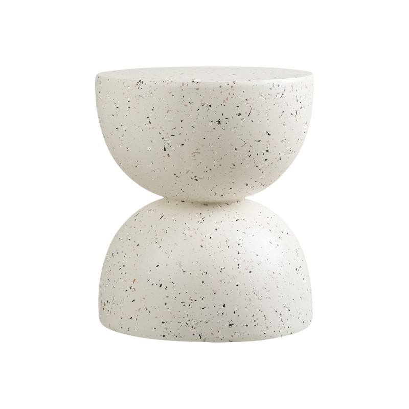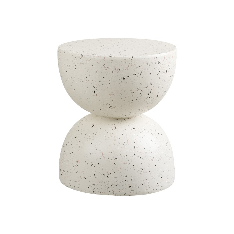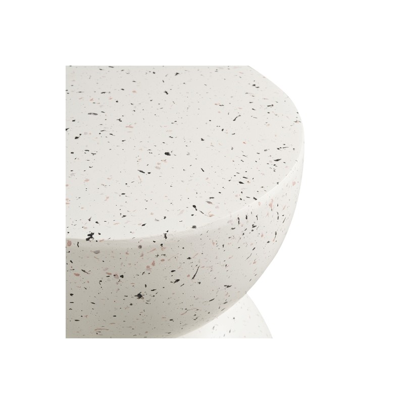 Powierzchnia w modnym wykończeniu typu terrazzo nadaje mu wyjątkowego charakteru i przyciąga wzrok subtelną, nieregularną strukturą. Dzięki temu stolik świetnie sprawdzi się jako designerski akcent zarówno w salonie, sypialni, jak i na tarasie czy balkonie.