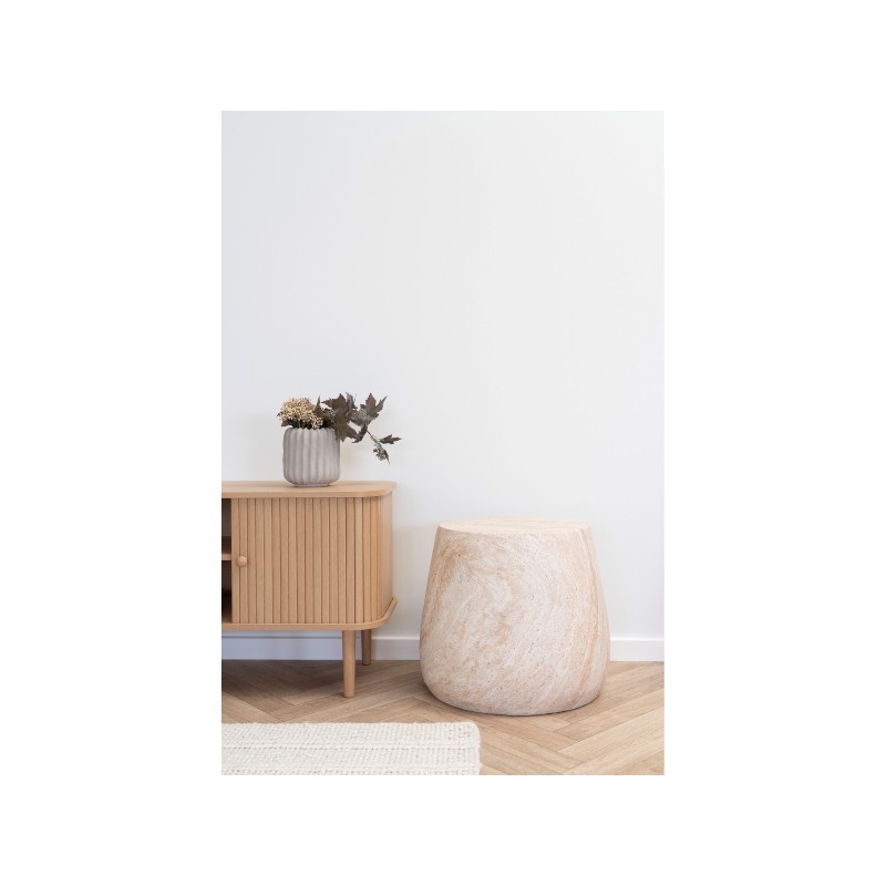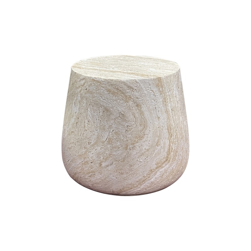 Wykonany z trwałego fiberclayu (mieszanki tlenku magnezu i włókna szklanego), stolik jest solidny, stabilny i odporny na codzienne użytkowanie. Może pełnić funkcję stolika pomocniczego w salonie, stolika nocnego w sypialni lub designerskiego akcentu na tarasie czy balkonie.
