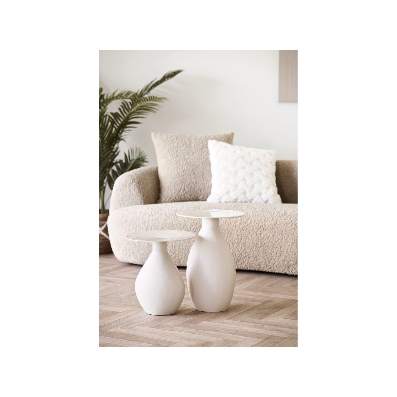STOLIK CALAIS 36CM BEŻOWY Kompaktowy i elegancki stolik boczny o średnicy 36 cm i wysokości 40 cm to praktyczne rozwiązanie do nowoczesnych wnętrz. Wykonany z metalu i wykończony emalią w subtelnym odcieniu bieli, zachwyca minimalistyczną formą oraz ponadczasową estetyką. Niższa wysokość sprawia, że stolik doskonale sprawdzi się jako uzupełnienie sofy,...