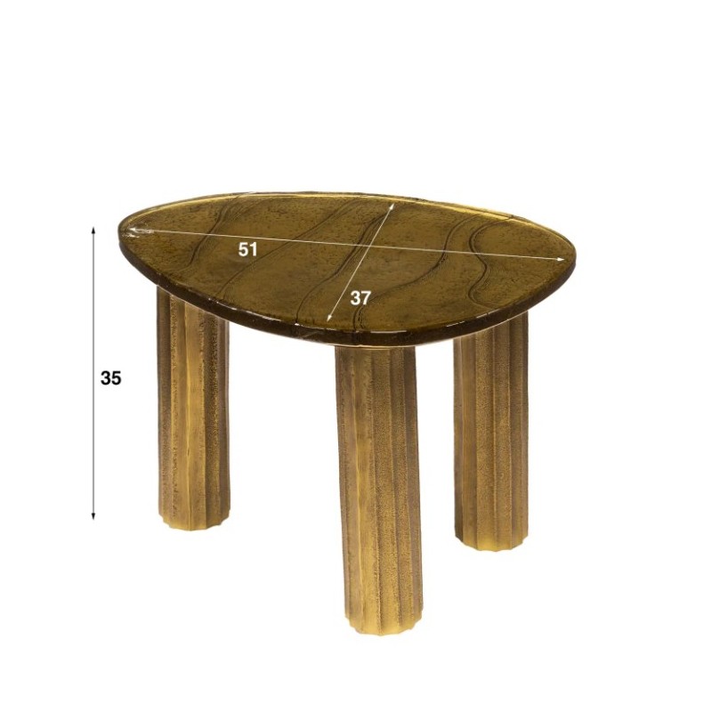 STOLIK KAWOWY 51X37 CM KIKO ZŁOTY Stolik kawowy KIKO to idealne rozwiązanie dla miłośników elegancji i ciekawych form. Ten nietuzinkowy mebel dzięki swoim kształtom i nietypowej strukturze wprowadzi do pomieszczenia niesamowity styl przykuwając uwagę każdego. Blat osadzony został na metalowej odlewanej piaskowo potrójnej podstawie w odcieniu złota...
