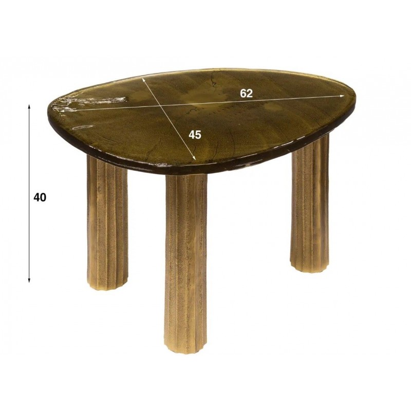 STOLIK KAWOWY 51X37 CM KIKO ZŁOTY Stolik kawowy KIKO to idealne rozwiązanie dla miłośników elegancji i ciekawych form. Ten nietuzinkowy mebel dzięki swoim kształtom i nietypowej strukturze wprowadzi do pomieszczenia niesamowity styl przykuwając uwagę każdego. Blat osadzony został na metalowej odlewanej piaskowo potrójnej podstawie w odcieniu złota...