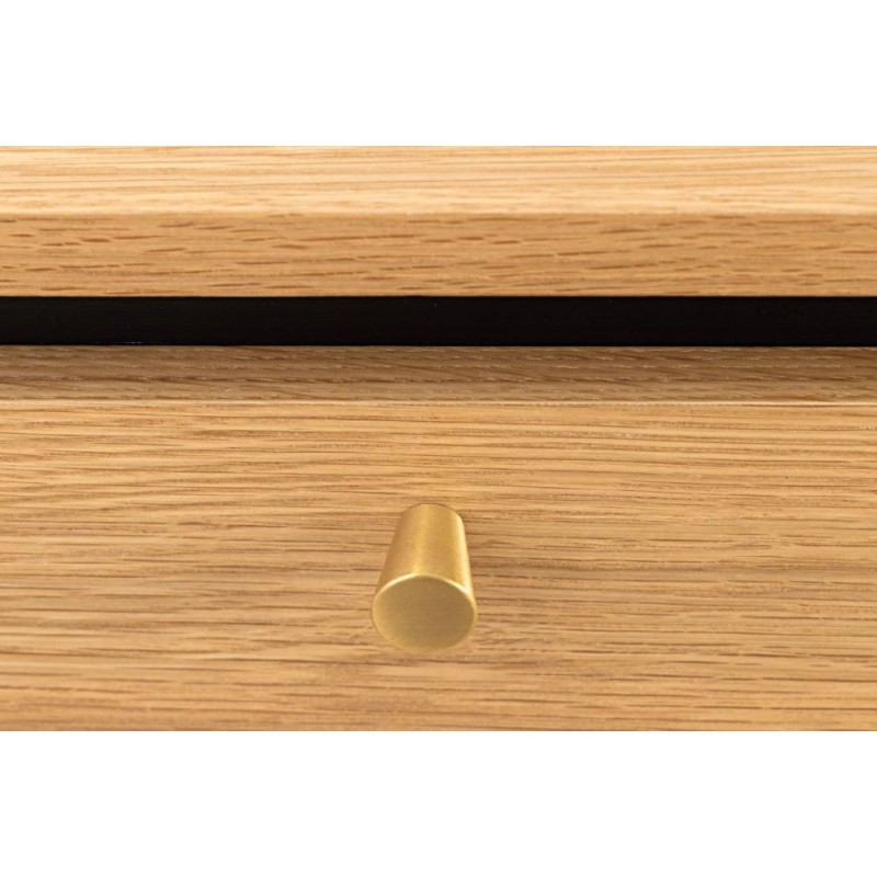 | Szczegóły wykończenia | na froncie zastosowano podłużne pionowe listwy dekoracyjne przypominające lamele, mebel wykonany jest z dużą precyzją, dzięki zachowaniu i odwzorcowaniu naturalnej oryginalności zarówno słojów jak i sęków |