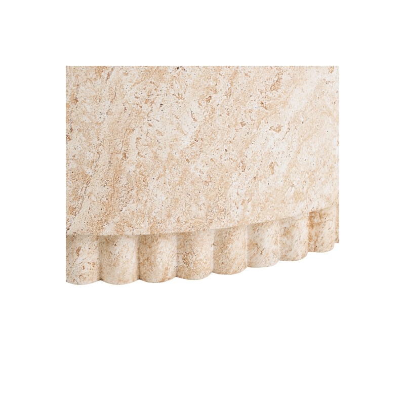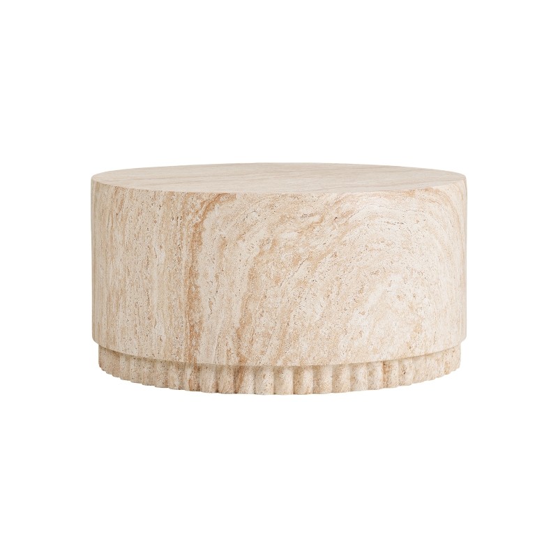 Stolik kawowy o średnicy 75 cm i wysokości 37 cm to stylowy element wyposażenia, który łączy nowoczesną formę z naturalnym charakterem materiału. Wykonany z fiberclay w naturalnym odcieniu, wyróżnia się ryflowaną podstawą, która nadaje mu eleganckiej struktury i dekoracyjnego wyrazu. Organiczna forma oraz subtelna kolorystyka sprawiają, że stolik doskonale wpisuje się w nowoczesne, minimalistyczne i naturalne aranżacje wnętrz. Dzięki solidnej konstrukcji i harmonijnym proporcjom stolik stanowi funkcjonalny i estetyczny akcent strefy wypoczynkowej, idealny do salonu lub przestrzeni lounge.
