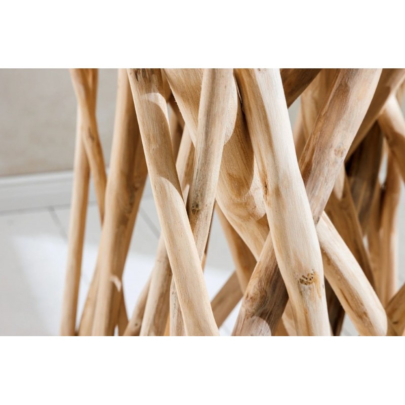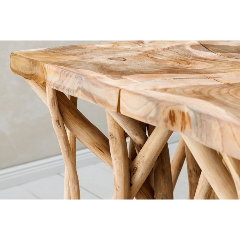 Stolik kawowy DRIFTWOOD to idealne rozwiązanie dla miłośników nietypowych form i naturalnych akcentów. Doskonale odnajdzie się w pomieszczeniach w stylu rustykalnym i nowoczesnym, gdzie doda wnętrzu charakteru i stanie się jego wyjątkową ozdobą. Jego największym atutem jest unikalna podstawa, ręcznie wykonana z wielu drewnianych nieobrobionych elementów przypominających drzewo wyrzucone na brzeg morza. Na tej niezwykłej, konstrukcji osadzono kwadratowy blat z drewna tekowego, który zachwyca ciepłą barwą i wyrazistością sęków i słojów sprawiając tym samym, że każdy egzemplarz jest niepowtarzalny i unikatowy. Stolik DRIFTWOOD sprawdzi się znakomicie w każdym salonie, gdzie stanie się nie tylko funkcjonalnym meblem, ale przepiękną dekoracją, która wzbogaci wnętrze i nada mu charakteru i unikalnego wyglądu.