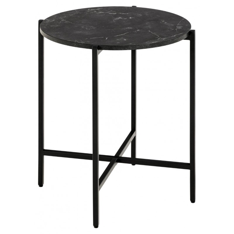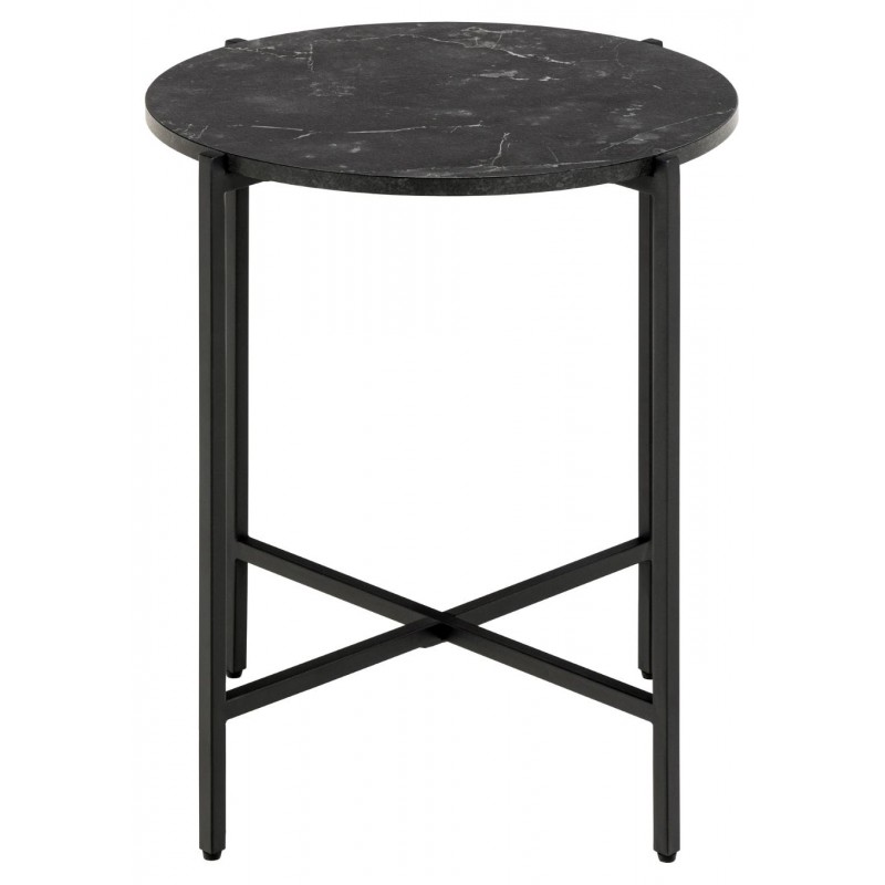 Lamoine to stolik o lekkiej, eleganckiej formie, inspirowany skandynawskim stylem, który doskonale uzupełni wystrój nowoczesnych wnętrz. Okrągły blat z efektem czarnego marmuru nadaje mu wyjątkowy charakter i wprowadza do pomieszczenia przytulną atmosferę. Stabilna podstawa z malowanej proszkowo na czarno stali nierdzewnej podkreśla jego nowoczesny wygląd. To idealne miejsce na dekoracyjną roślinę, lampę lub filiżankę kawy.