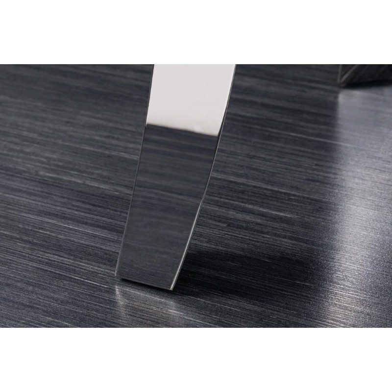 KONSOLA MODERN BAROCK 145X45 CM ANTRACYT Nowoczesna konsola MODERN BAROCK, która została osadzona na stabilnej prostokątnej stalowej konstrukcji w kolorze srebrnego chromu. Jej najbardziej przyciągającym uwagę elementem jest prostokątny blat o grubości 1,0 cm, wykonany ze spieku kamiennego wyglądem przypominającego marmur, którego kolorystykę przełamano...