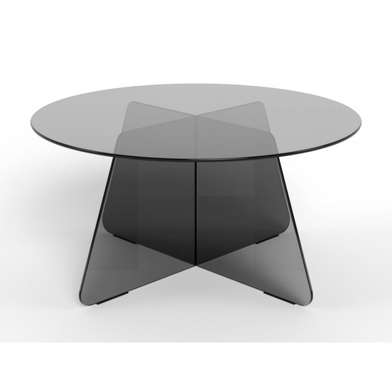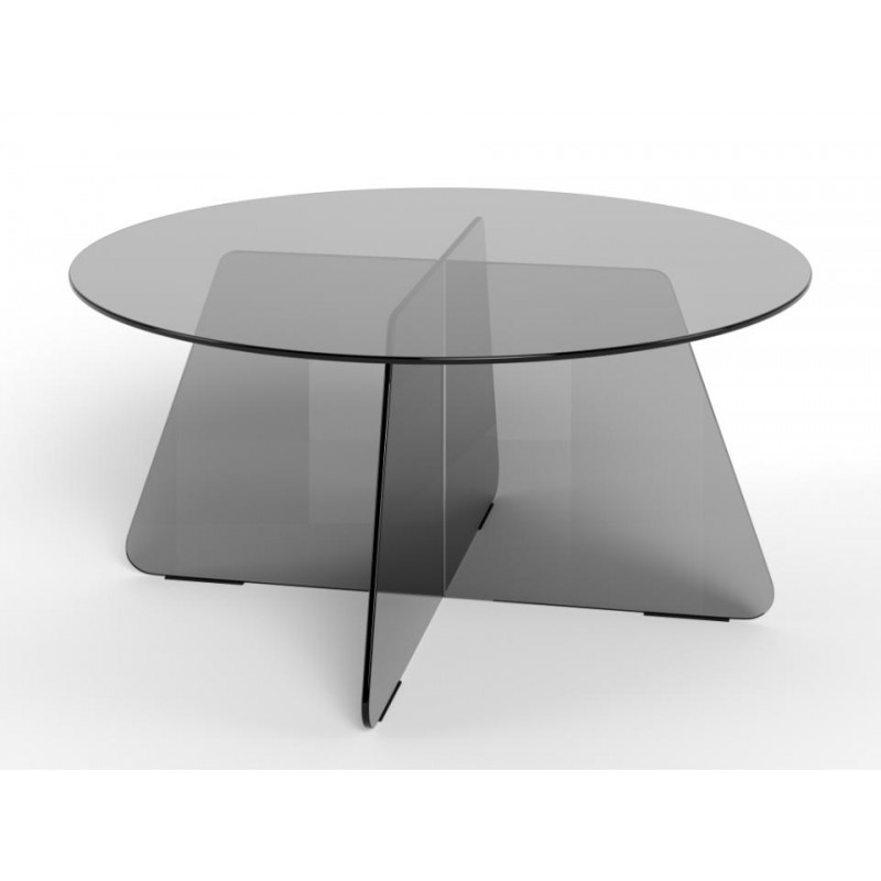 Ten okrągły stolik kawowy, wykonany z przydymionego szkła hartowanego, zachwyca połączeniem minimalistycznej elegancji i harmonijnej symetrii. Jego blat oraz podstawa tworzą spójną całość, nadając meblowi wyjątkową lekkość wizualną, która optycznie powiększa przestrzeń i doskonale komponuje się z nowoczesnym wystrojem wnętrz.