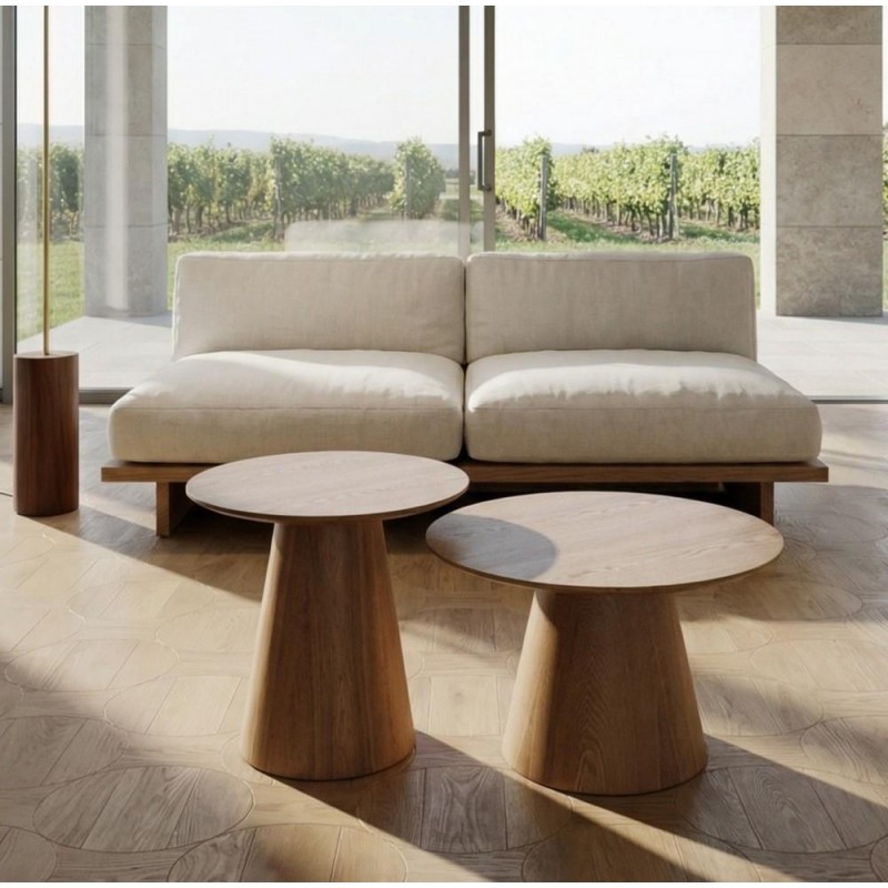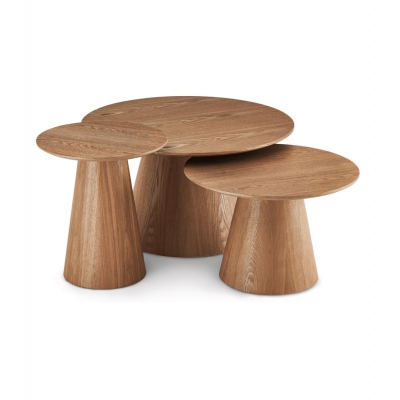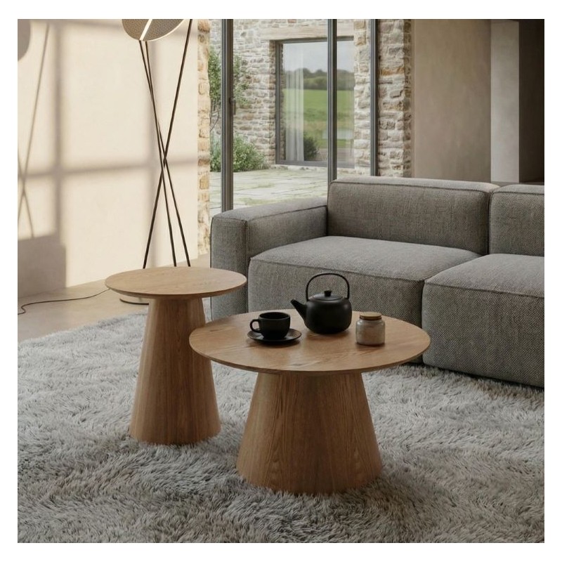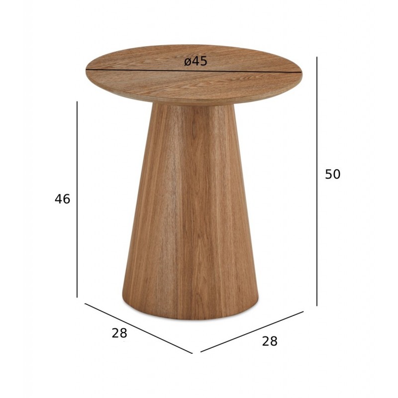 Przedstawiamy stolik kawowy Tango, stylowy dodatek do każdego pomieszczenia mieszkalnego. Ten okrągły stół, wykonany z wytrzymałej ramy z płyty MDF i forniru, ma środkową podstawę na nogi zapewniającą stabilność. Nogi również wykonano z płyty MDF i forniru, co zapewnia trwałość. Dzięki szerokości i głębokości 45 cm ten stolik kawowy idealnie pasuje do każdego pomieszczenia. Blat stołu wykonany został z płyty MDF oklejonej imitacją dębu, przez co ten prosty stolik bez wątpienia doda Twojemu wystrojowi wyjątkowej elegancji.