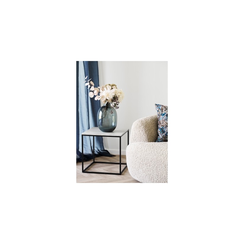 Vita stolik kawowy - stolik kawowy, blat wykonany z imitacji trawertynu z czarną ramą 45x45x45 cm