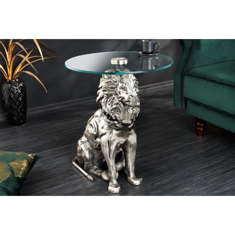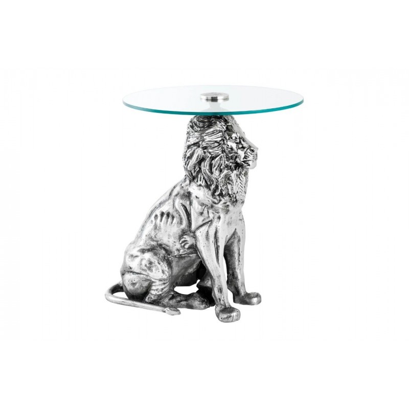 STOLIK KAWOWY WILDLIFE LION 45 CM SREBRNY