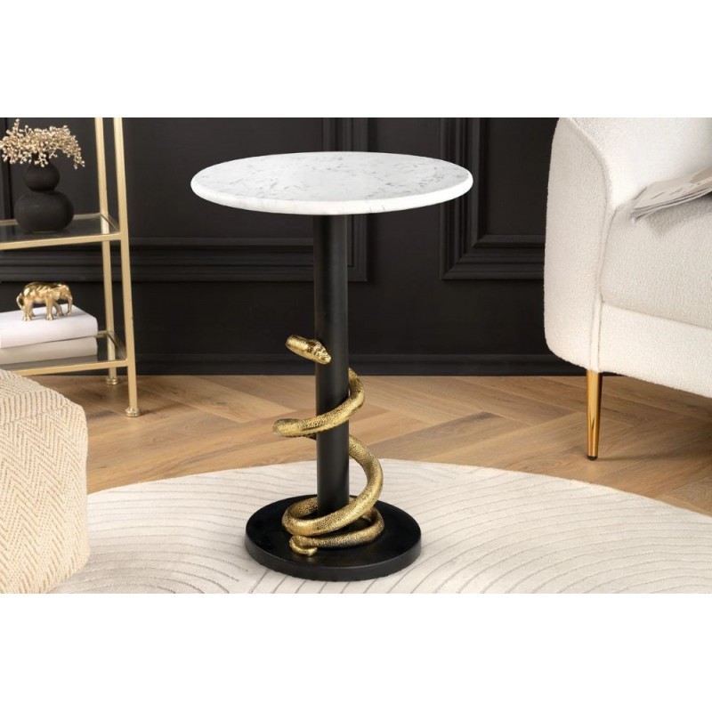 STOLIK KAWOWY WILDLIFE SNAKE 41 CM MARMUR BIAŁY