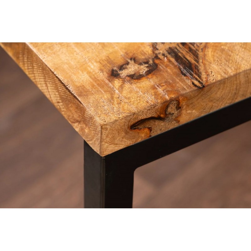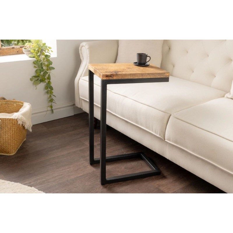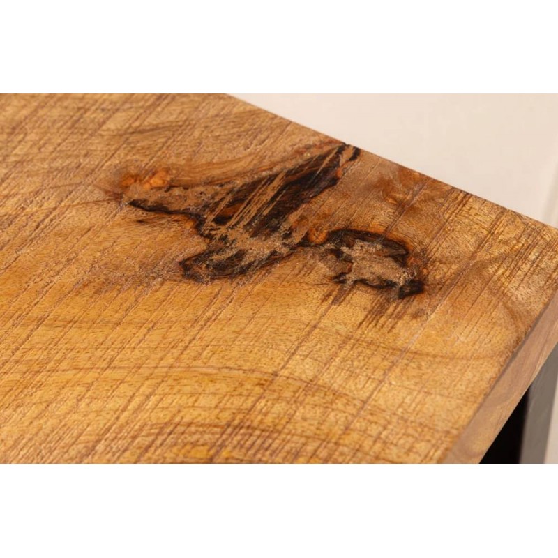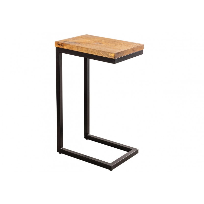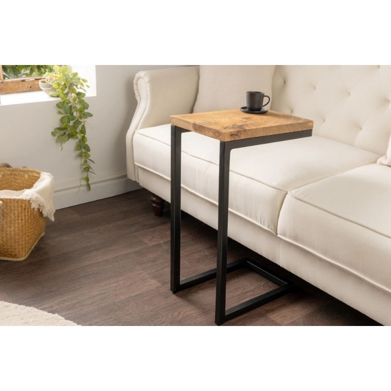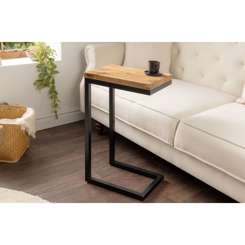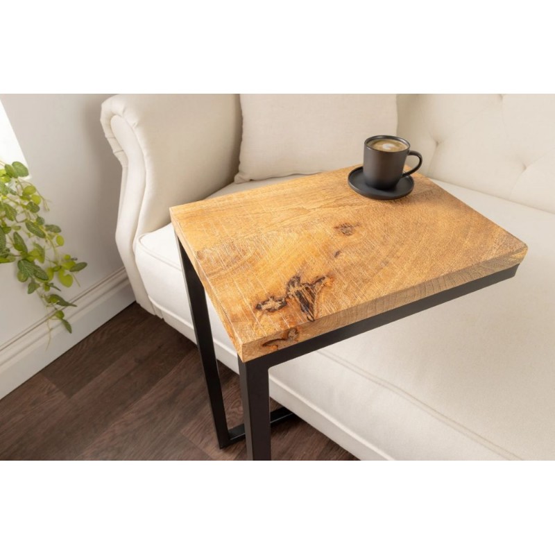Stolik pod laptop GASTON to idealne rozwiązanie do każdego wnętrza w stylu nowoczesnym oraz industrialnym gdzie dzięki swojej formie oraz strukturze doda wnętrzu charakteru i unikatowego wyglądu. Konstrukcja stolika została wykonana w całości z metalu w kolorze czarnym, co podkreśla minimalistyczny wygląd mebla nadając mu surowości. Na stabilnej konstrukcji został osadzony lakierowany ręcznie robiony blat wykonany z litego drewna mango, który dzięki zachowanej oryginalnej strukturze drzewa w postaci sęków i słojów uwydatnia swoją naturalność prezentując się zjawiskowo. Efekt końcowy połączenia koloru naturalnego blatu oraz ciemnej metalowej podstawy jest fenomenalny. Stolik ten odnajdzie się znakomicie w każdym nowoczesnym salonie gdzie stanie się nie tylko funkcjonalnym meblem, ale także przepiękną dekoracją, która doda wnętrzu niesamowitego wyglądu.