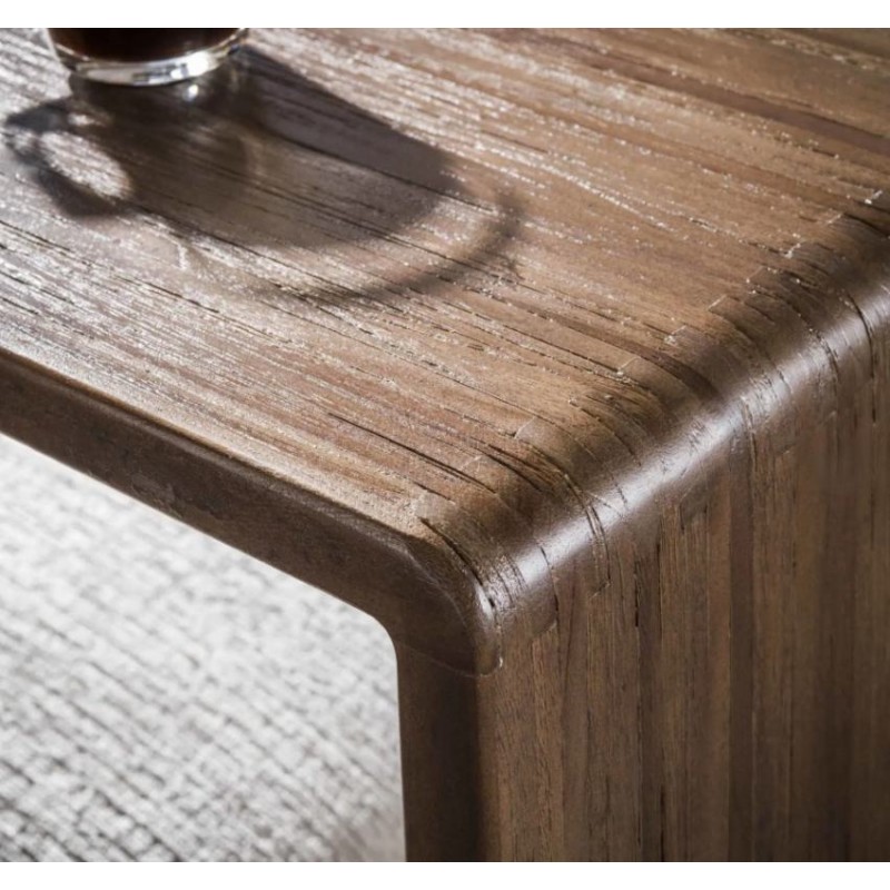 Stolik pod laptop SERKAN to idealne rozwiązanie do każdego wnętrza w stylu nowoczesnym oraz industrialnym gdzie dzięki swojej formie oraz strukturze doda wnętrzu niezwykłego wyglądu oraz charakteru. Ręcznie robiony ciemnobrązowy blat stanowi wyjątkowość mebla, a zastosowane na jego powierzchni dekoracyjne pionowe promienie, uwydatniają swoją naturalność, na których zachowano oryginalną strukturę drewna w postaci sęków i słojów. Wykonany w całości z drewna teak w odcieniu brązowym podkreśla minimalistyczny wygląd mebla nadając mu surowości. Funkcjonalna jego konstrukcja w formie litery C pozwala na łatwe przesuwanie go wzdłuż sofy lub fotela gdzie może swobodnie służyć również jako stolik boczny czy pomocniczy. Bez wątpienia odnajdzie się znakomicie w każdym nowoczesnym salonie gdzie stanie się nie tylko praktycznym meblem, ale również dekoracją dodającą wnętrzu niesamowitego wyglądu.
