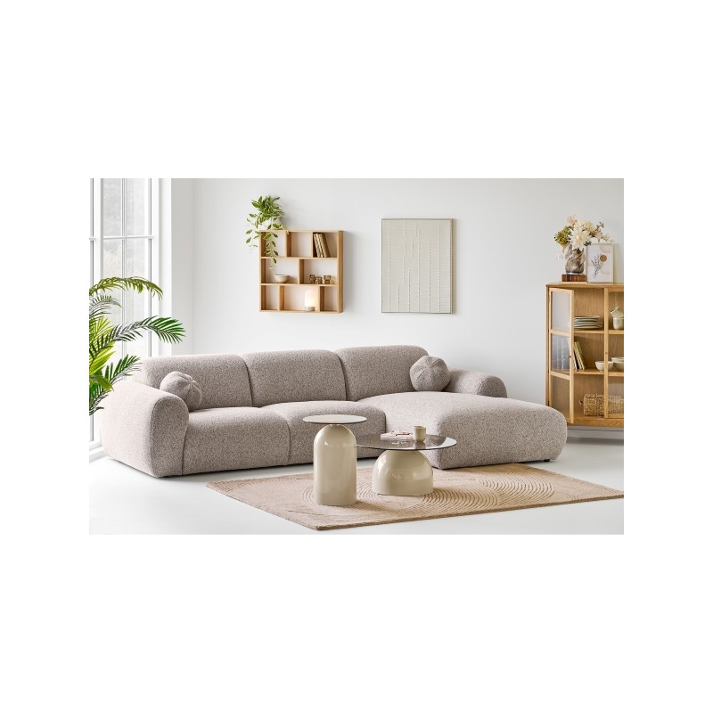 Może funkcjonować samodzielnie lub w zestawie ze stolikiem kawowym w większym rozmiarze, tworząc harmonijną i funkcjonalną aranżację salonu.