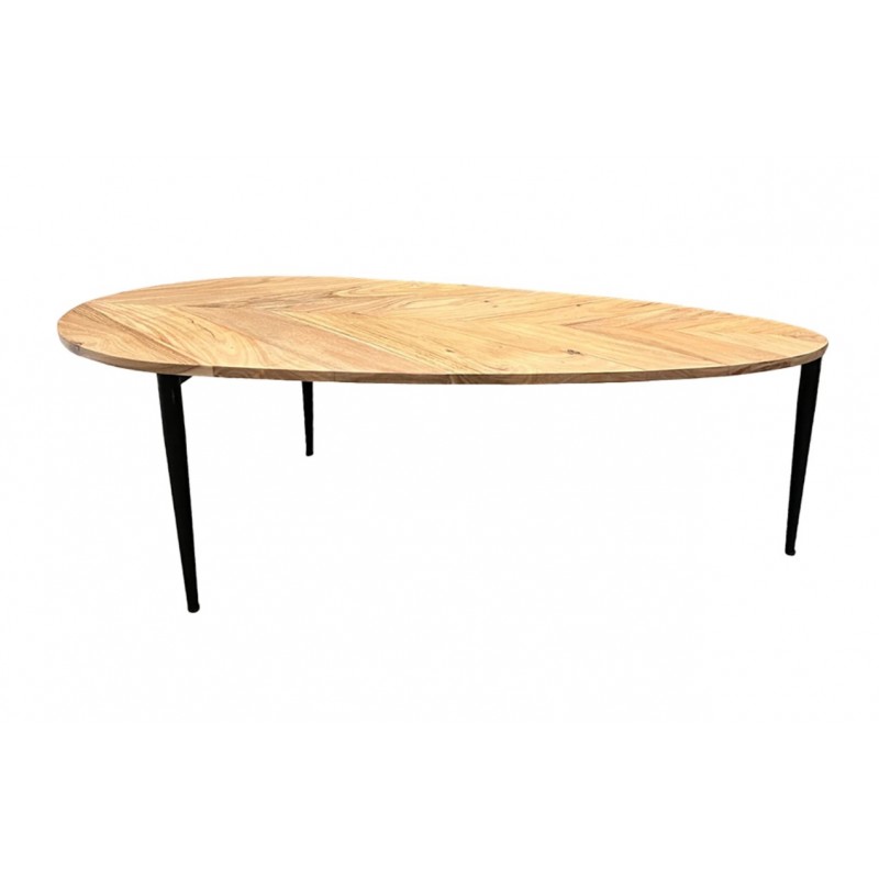 STOLIK KAWOWY MAMMUT Nowoczesny stolik kawowy, postawiony na czarnych nogach wykonanych z metalu. Blat wykonany z litego drewna akacjowego, o grubości 4 cm. Mebel ten idealnie odzwierciedla styl industrialny. Produkt jest wykonany z surowców naturalnych, przez co może różnić się od prezentowanych zdjęć. Wszystkie przetarcia, szczeliny oraz nierówności są...