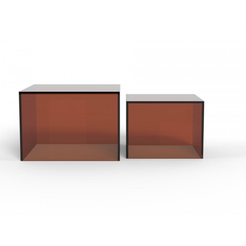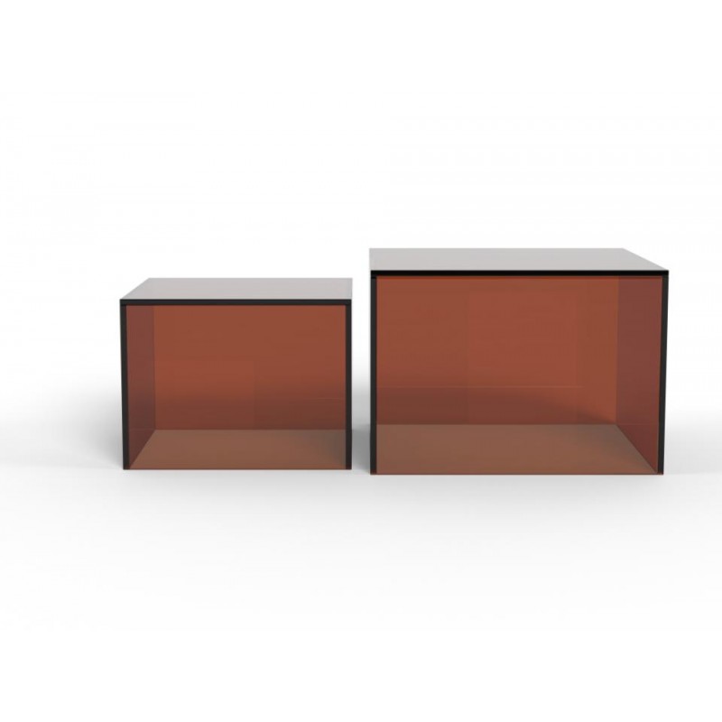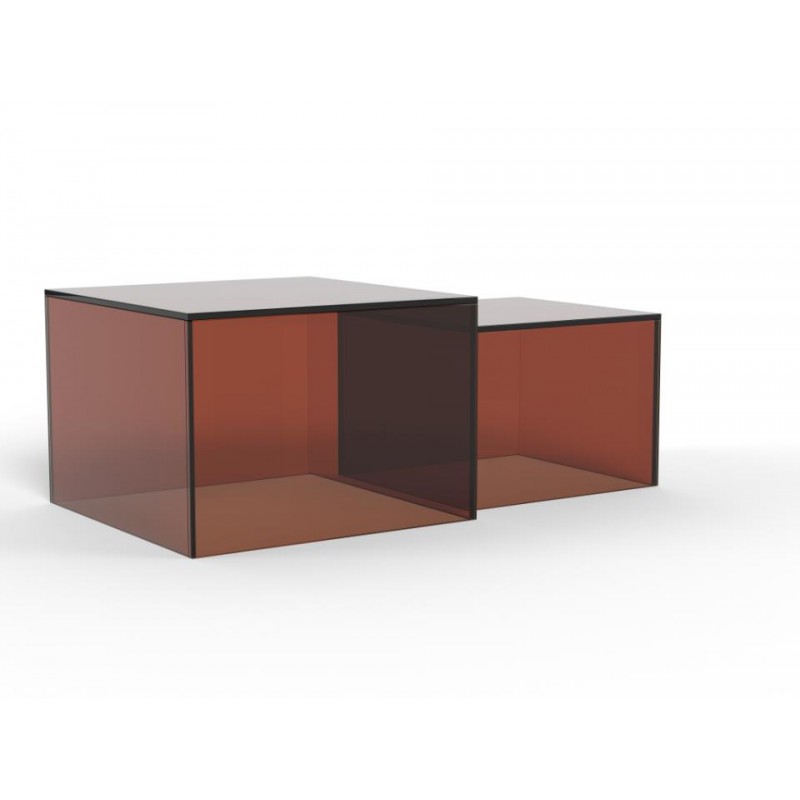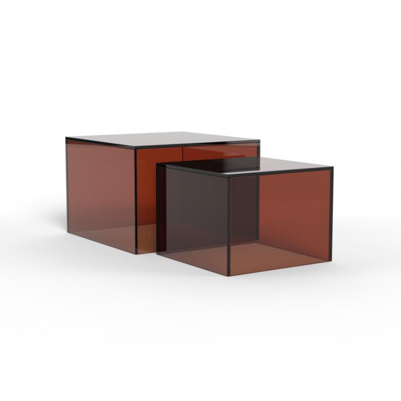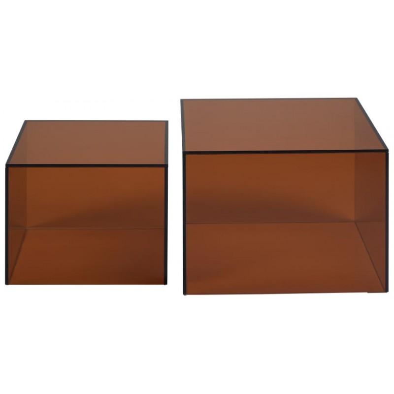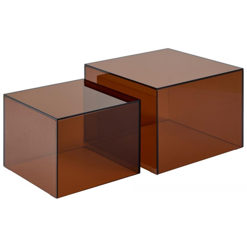 ZESTAW STOLIKÓW KAWOWYCH DICE SQUARE SZKŁO BRĄZOWE- 50x50x35 cm; 40x40x30 cm