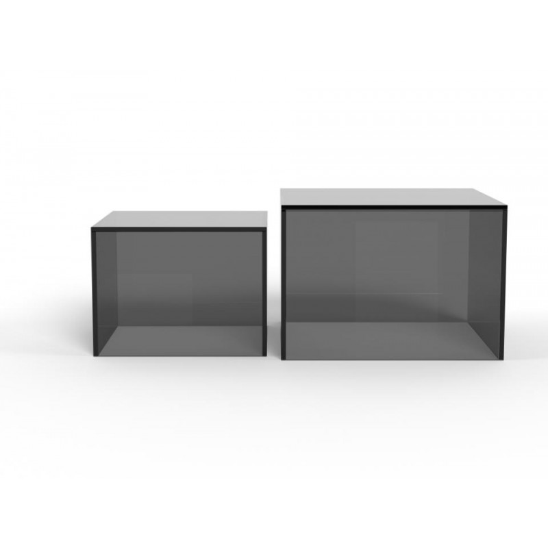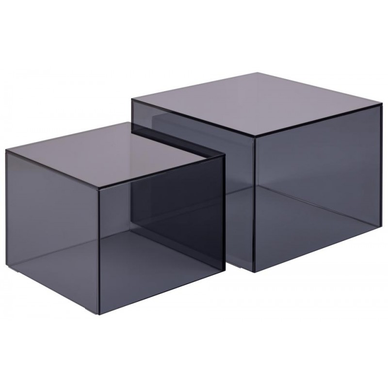 ZESTAW STOLIKÓW KAWOWYCH DICE SQUARE SZKŁO PRZYDYMIONE- 50x50x35 cm; 40x40x30 cm