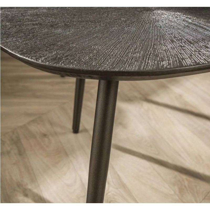 STOLIK KAWOWY LEAF 80 CM SREBRNY Ten nowoczesny stolik kawowy koloru srebrnego wykonany został w całości ze stopu metalo-aluminiowego, który idealnie odnajdzie się w przestronnym nowoczesnym salonie. Wyjątkowość tego mebla stanowi jego kształt oraz wygląd odzwierciedlający pajęczynę, wzór ten wykonywany jest za pomocą frezowania ręcznego, dzięki czemu...
