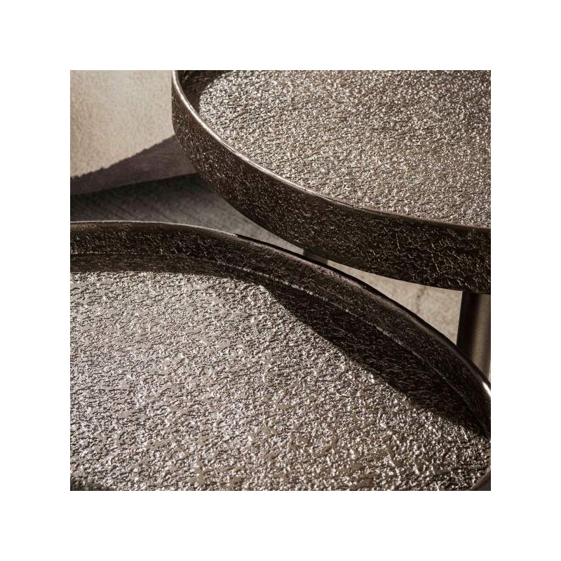 | Dodatkowe informacje | na blatach stolików zastosowano dekoracyjne chropowate zdobienia strukturą oraz formą przypominające płynny metal |